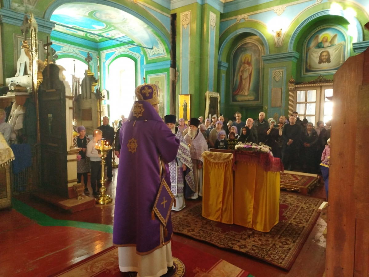 В завершение литургии состоялось поклонение Кресту Господню, после чего Владыка Сергий обратился к собравшимся с архипастырским словом, в котором поздравил прихожан с днями попразднства Воздвижения Креста Господня и поблагодарил духовенство, хор и мирян за общую молитву в этот воскресный день.