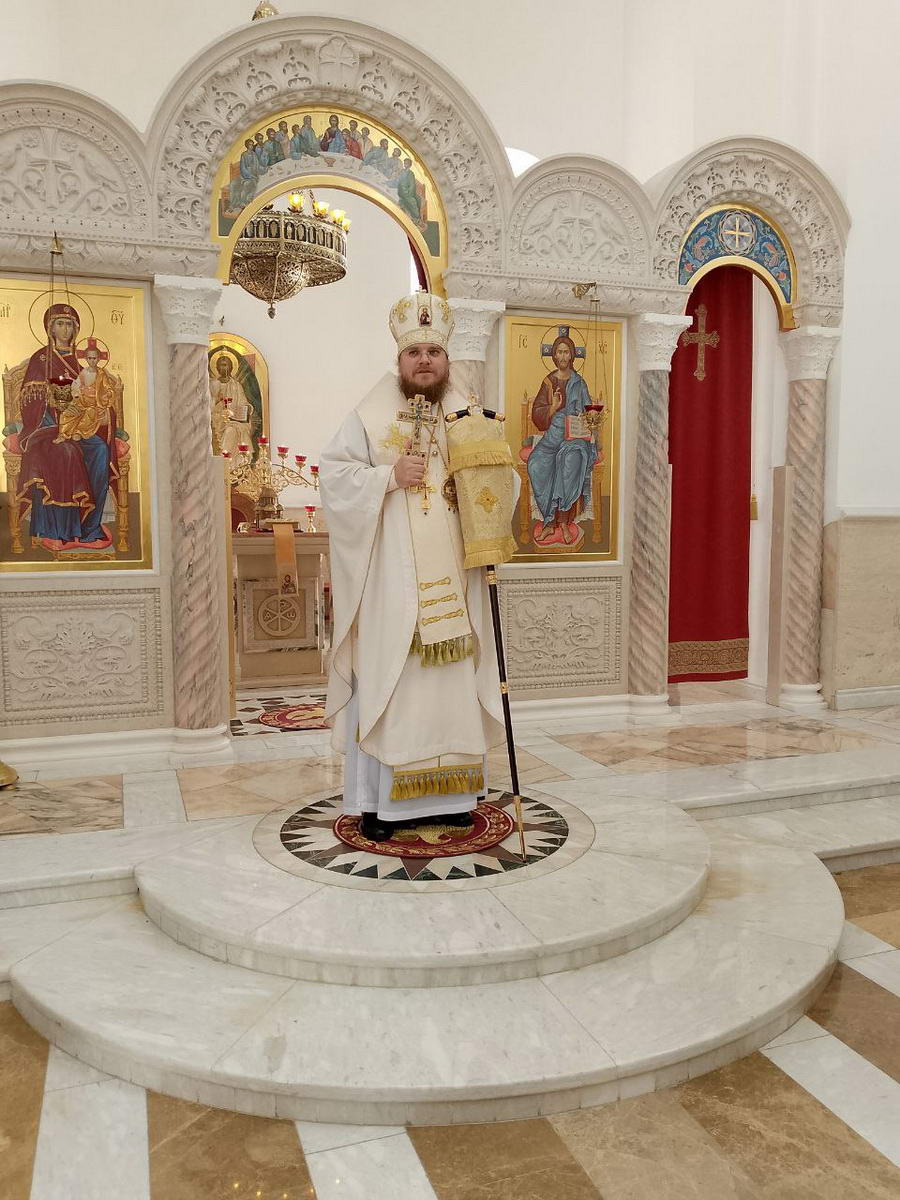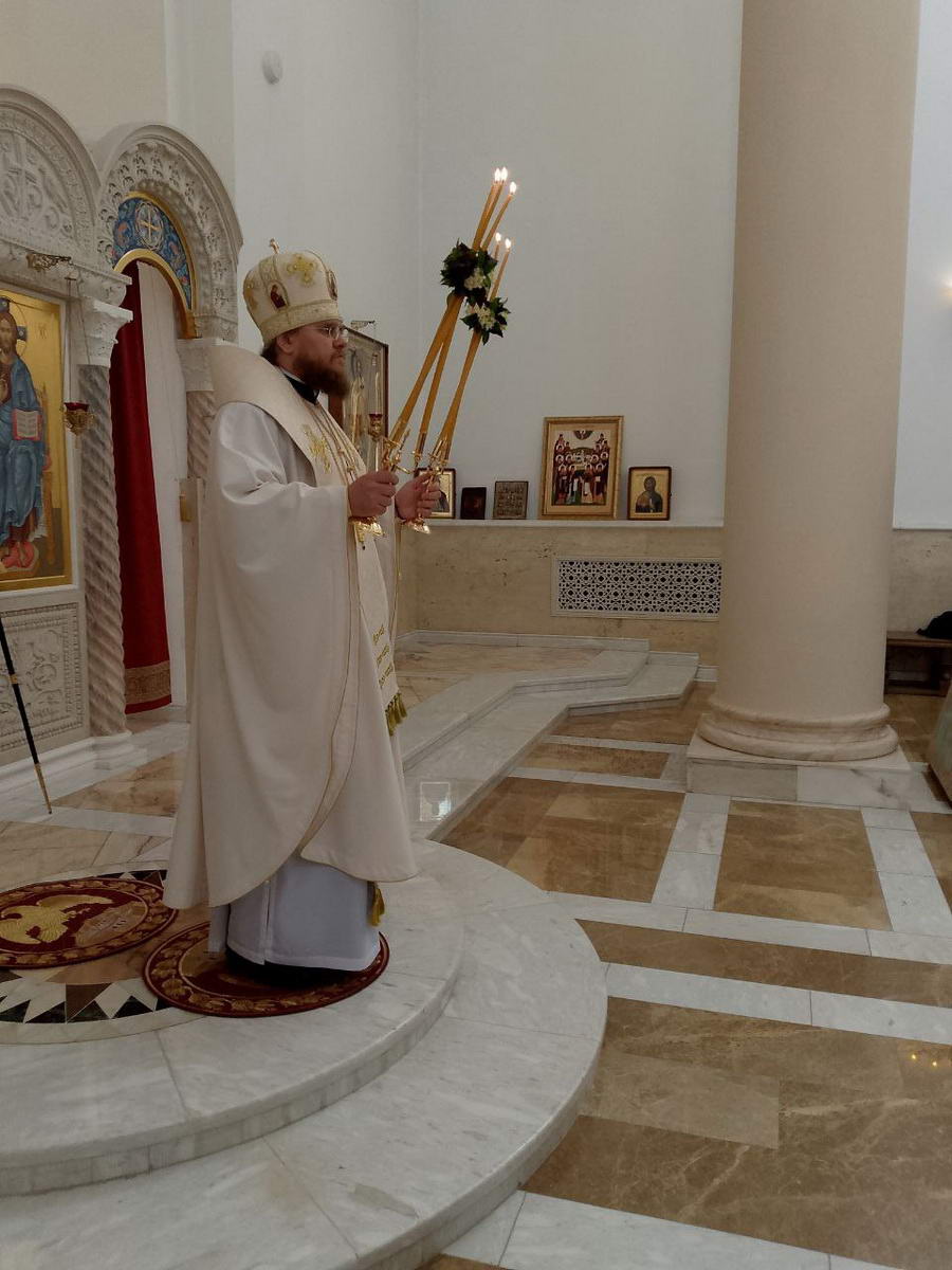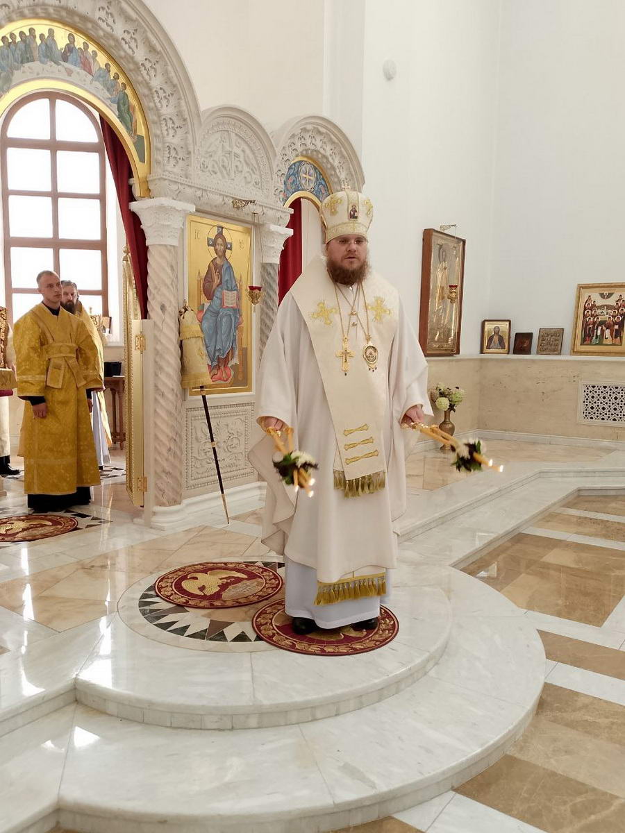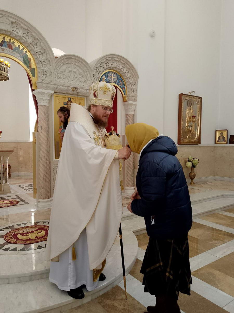 В завершение литургии епископ Сергий обратился к собравшимся с архипастырским словом, в котором рассказал о Евангельской притче о званных на брачный пир, прочитанной за литургией. "Все люди призваны быть в Царствии Небесном. Но, как в притче сказано, каждый занят какими-то своими важными делами. И хоть сам Господь зовет к Себе, многие не желают идти на этот пир в Царство Небесное. В притче мы видим и то, как среди гостей оказался человек не в брачной одежде. Конечно, это всё иносказательно, но понятно нам, что это одежда подразумевает наши добрые дела, исполнение Закона Божиего. Господь всех, без исключения, призывает на этот пир, не каких-то избранных, а каждого человека. Все призваны стать святыми. Но при этом выбор Господь оставляет за каждым из нас. Выбор, который делает только сам человек. Все мы призваны быть наследниками Царствия Небесного.