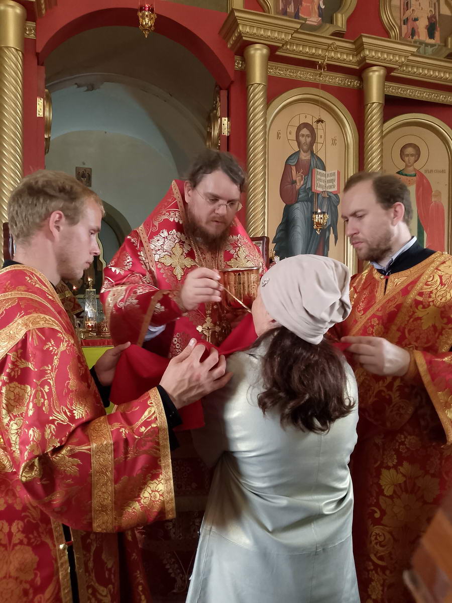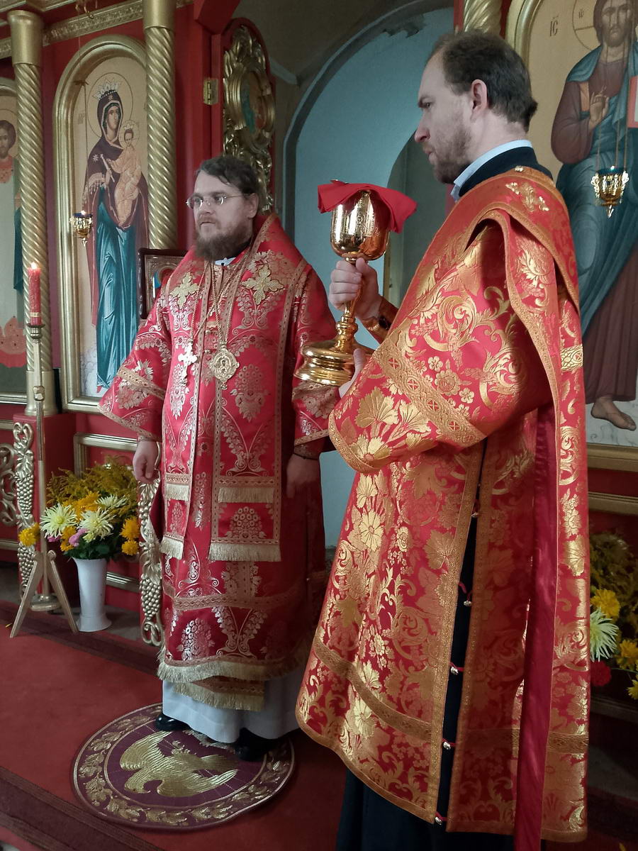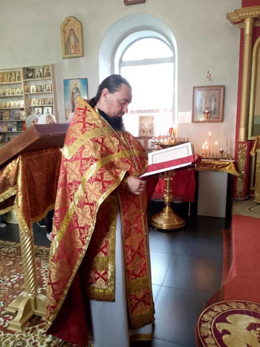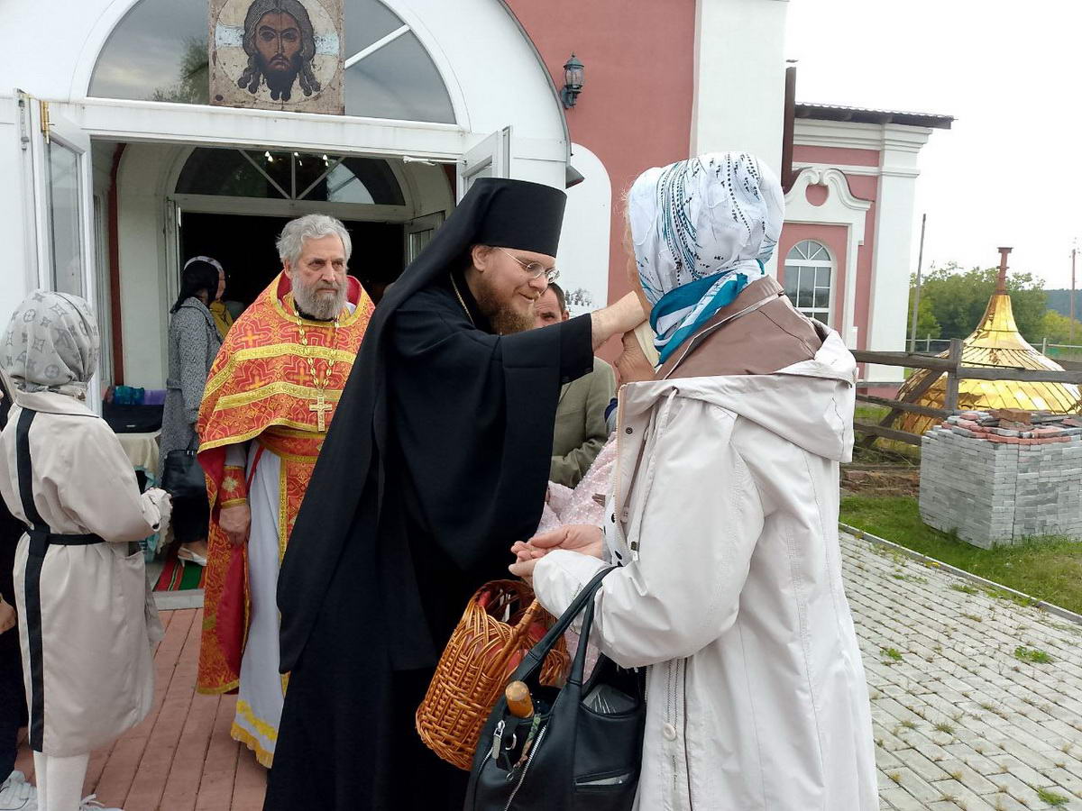 По запричастном стихе проповедь произнес иеромонах Прокопий (Руднев), который напомнил о жизни и мученическом подвиге священномучеников Ионна, Иоасафа и Константина, пострадавших в годы Гражданской войны в с. Мироново.