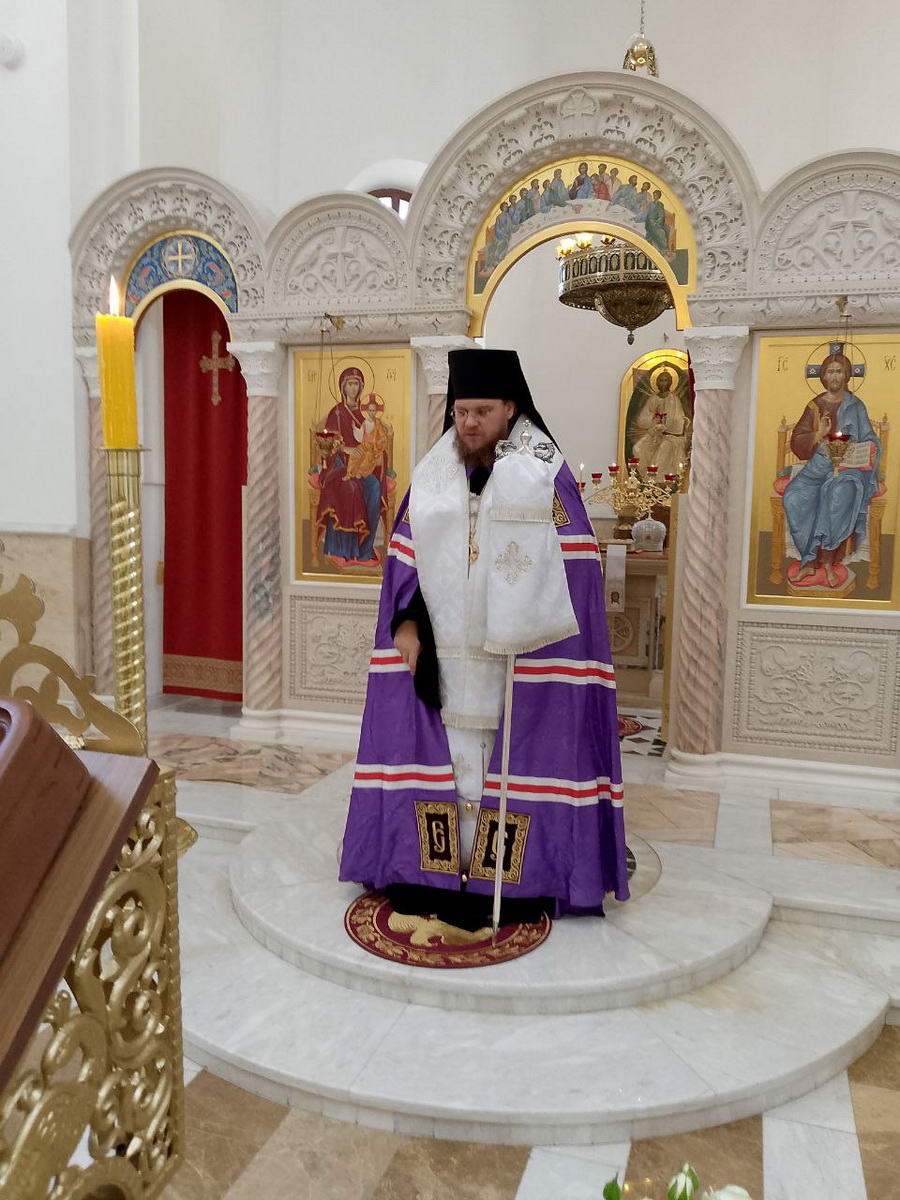 За всенощным бдением состоялось помазание прихожан освященным на литии елеем. В завершение богослужения настоятель храма отец Владислав поблагодарил прихожан за молитву и пригласил на предстоящую завтра Божественную литургию архиерейским чином.