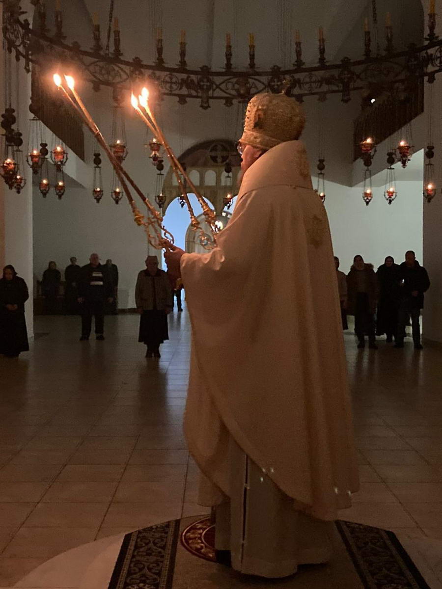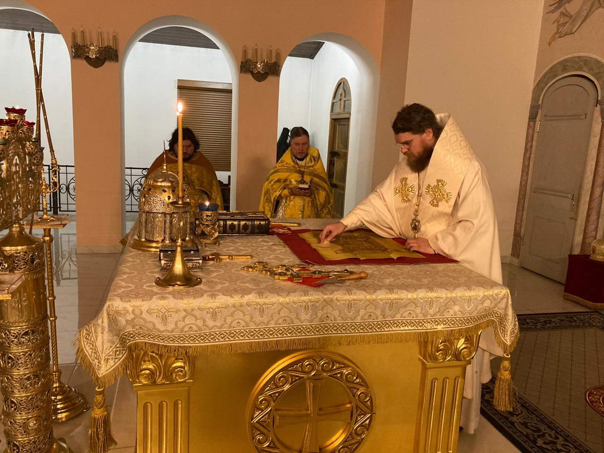 За богослужением были вознесены особые прошения и молитва о мире на Святой Руси.