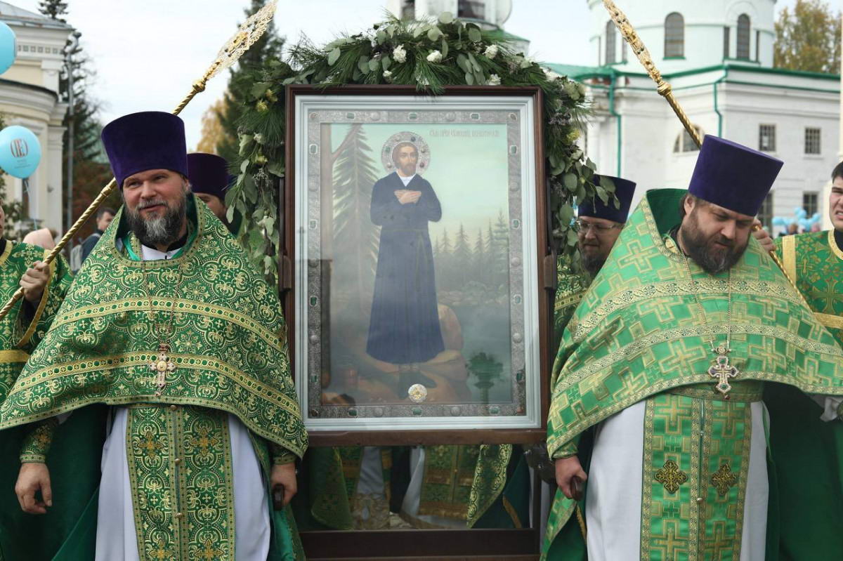 В завершение литургии состоялся торжественный крестный ход вокруг Крестовоздвиженского собора Свято-Никольской обители города Верхотурья, после чего митрополит Евгений обратился ко всем собравшимся с архипастырским словом, в котором призвал всех нас особенно обратить внимание на подвиг святой жизни во Христе праведного Симеона Верхотурского.