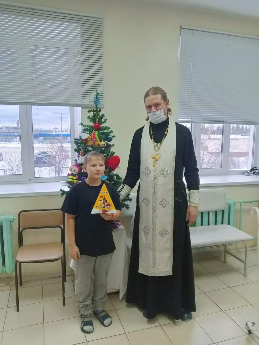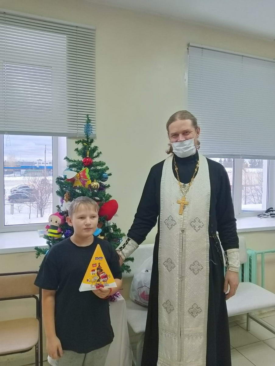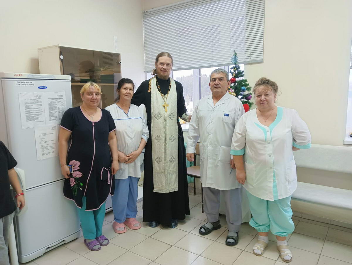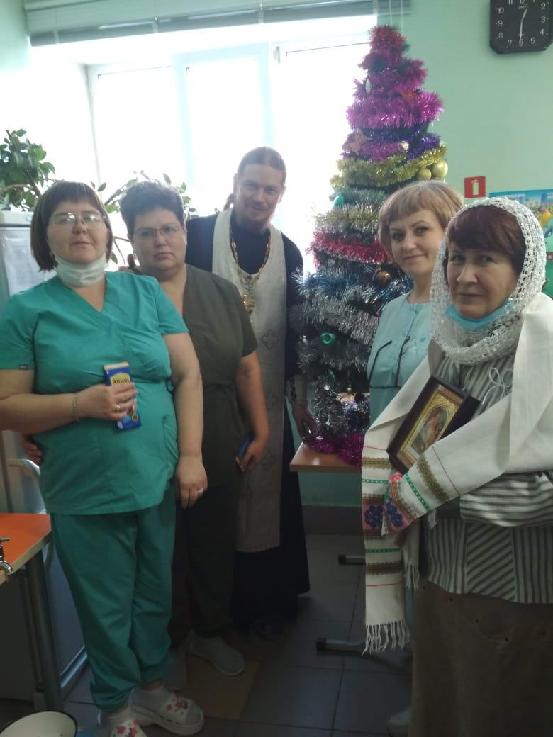 10 января, в продолжение Святочных дней, с праздником Рождества Христова поздравили сотрудников и пациентов Алапаевской городской больницы. Совершающий духовное окормление городской больницы клирик Свято-Троицкого кафедрального собора г. Алапаевска иерей Димитрий Помыткин посетил молебную комнату при больнице, где совершил водосвятный молебен, после чего прошел по отделениям стационара, где поздравил медперсонал и пациентов с Рождеством Христовым. Вместе с помощниками отец Димитрий прошел все отделения, где спели тропарь Рождества Христова, окропили всех Святой водой и вручили сладкие подарки.