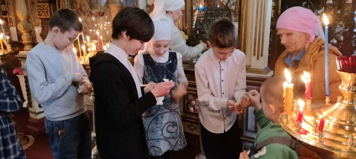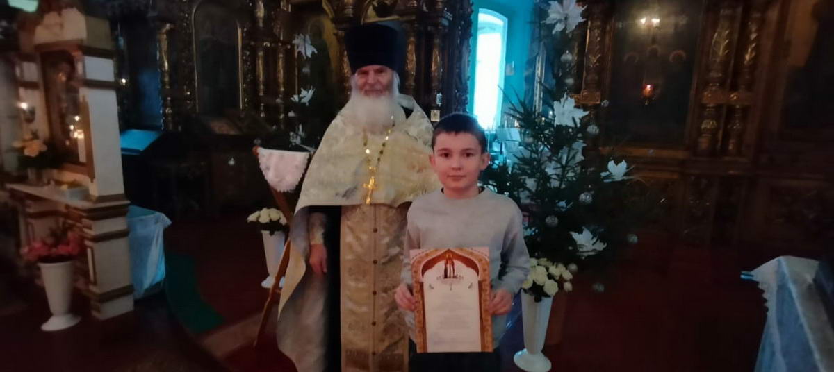 По окончании молебна батюшка наградил детей грамотами за участие и победы в конкурсах и олимпиадах, проходивших в декабре. А когда прихожане и дети подходили ко кресту, то дети старшего класса раздавали всем небольшие сувениры – красивые сувениры и Рождественские звёзды, которые они вместе со своими педагогами Ириной Викторовной Алфёровой и Ольгой Олеговной Добрых изготовили сами.