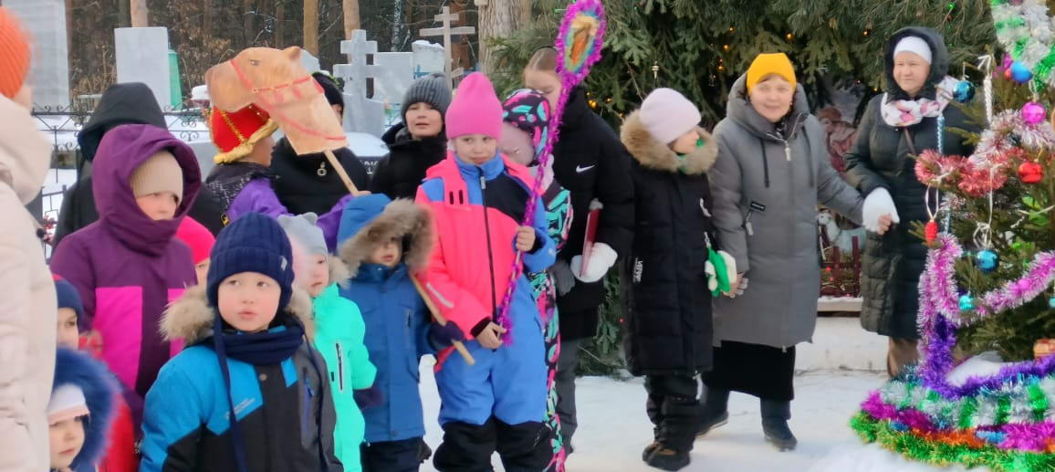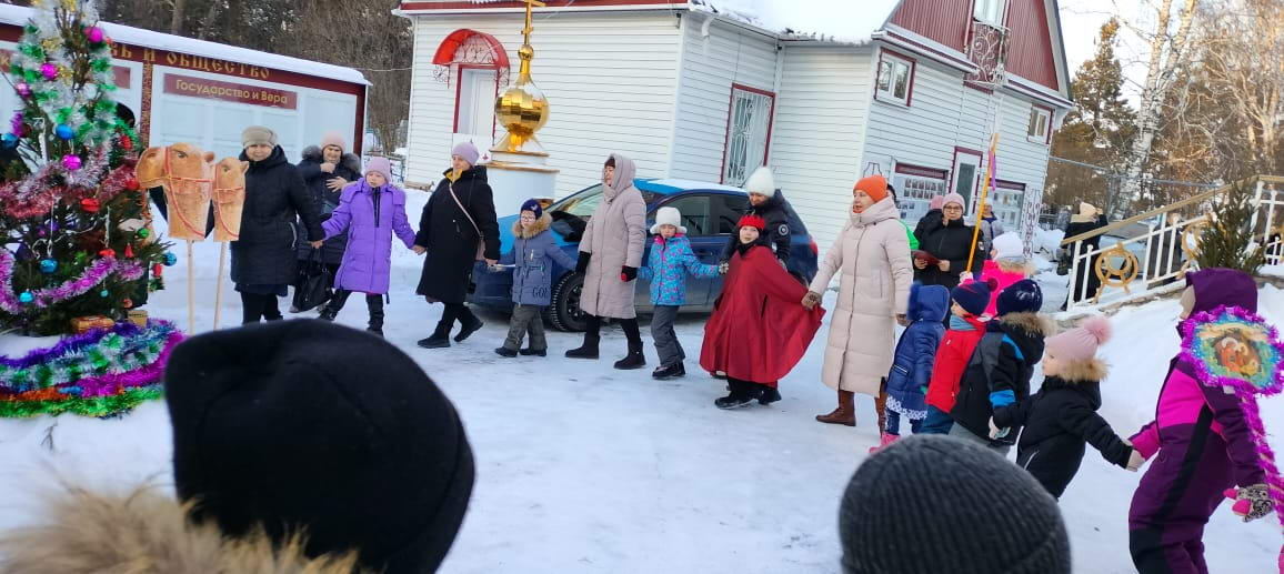 Наконец этот радостный день наступил - 7 января 2025 г. Некоторые дети воскресной школы посетили даже праздничную ночную службу! А уже днём, как всегда, настоятель подворья протоиерей Николай Решетников совершил праздничный Рождественский молебен. Все дети и взрослые с удовольствием подхватывали тропарь праздника. И, конечно, все участники молебна прошли Крестным ходом вокруг Свято-Троицкого храма.