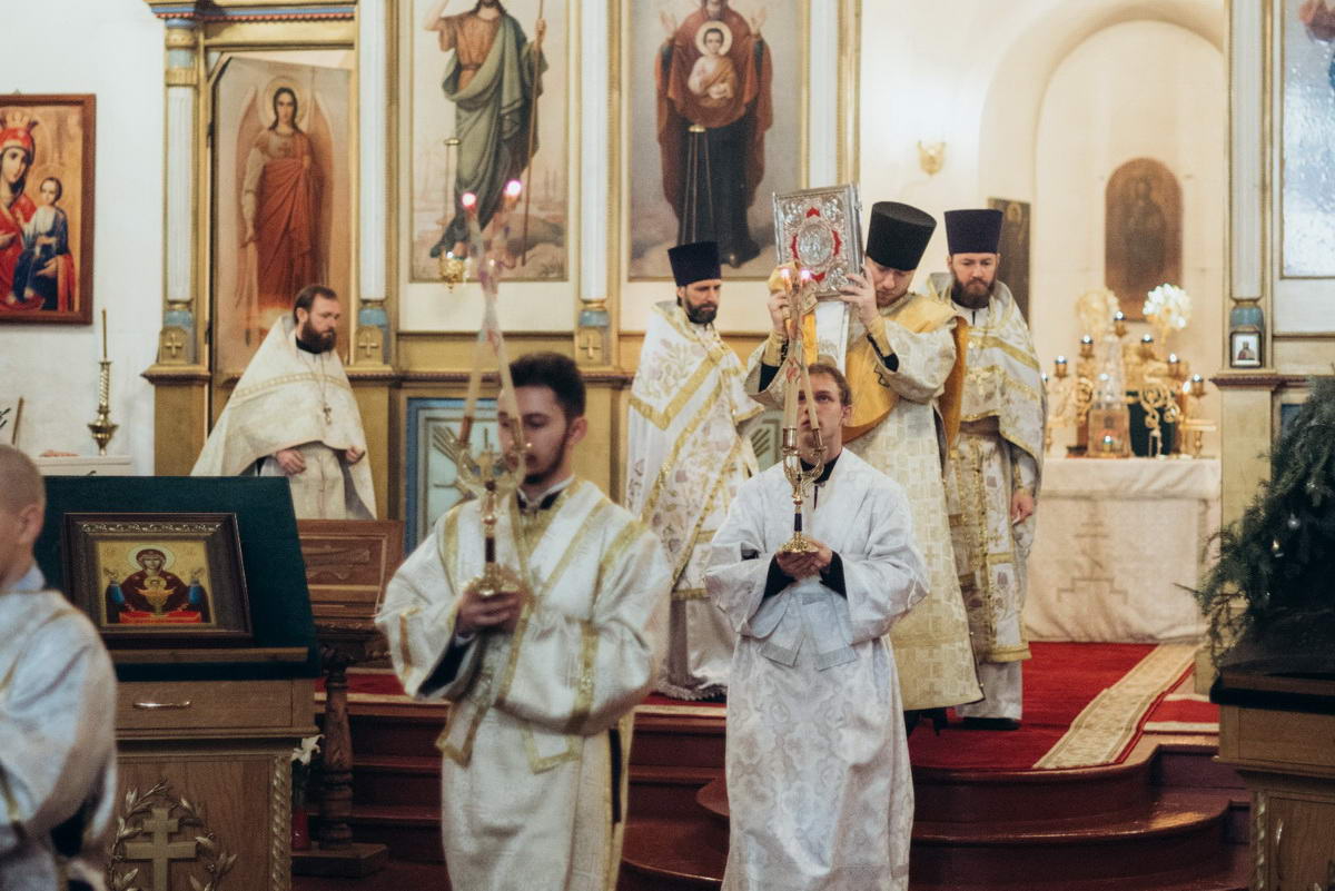 За литургией были вознесены прошения и молитва о мире на Святой Руси.