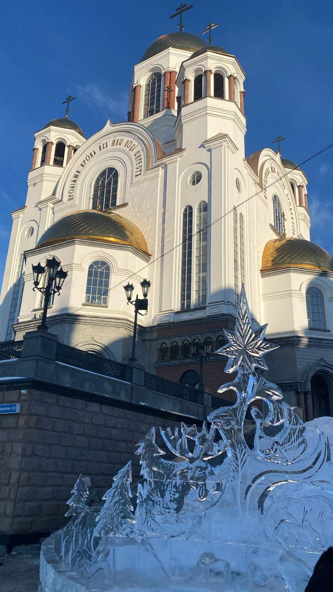 После Ново-Тихвинского монастыря мы отправились в Храм-памятник на Крови во имя всех Святых, в земле Российской просиявших, и посетили выставку ледовой скульптуры "Вифлеемская звезда".