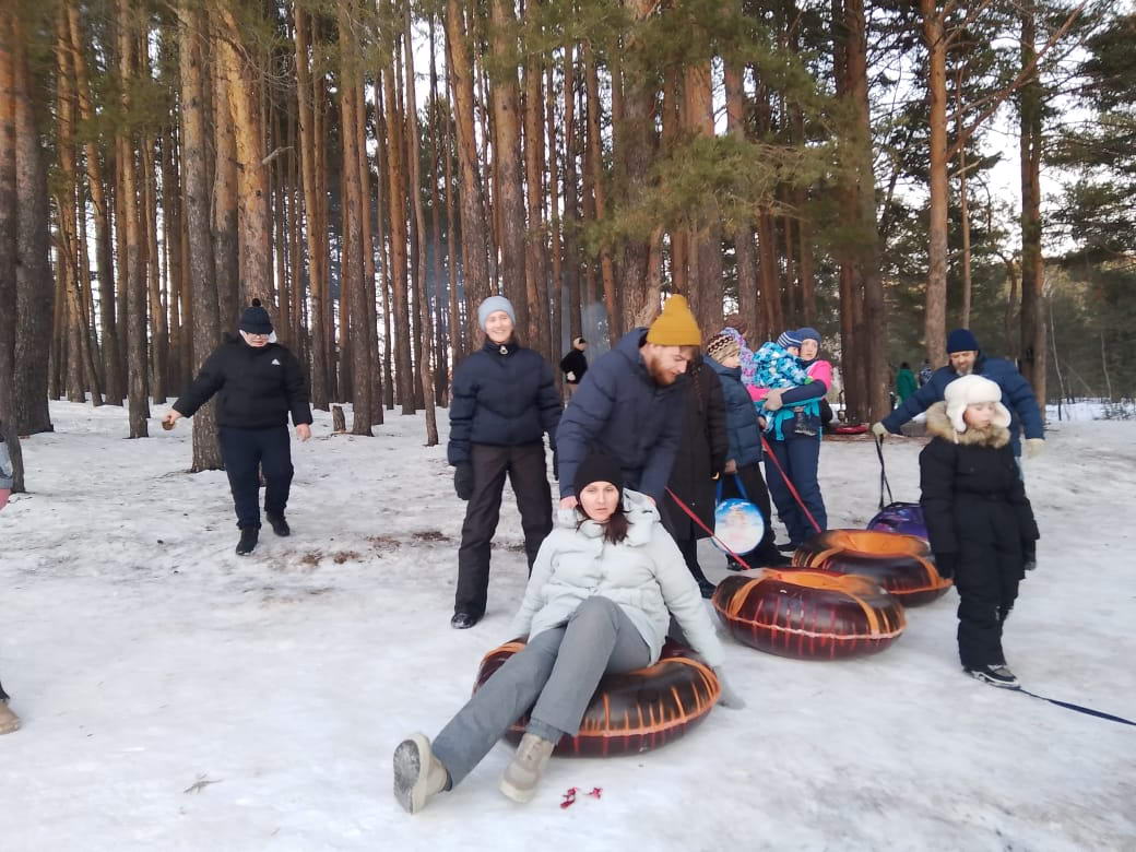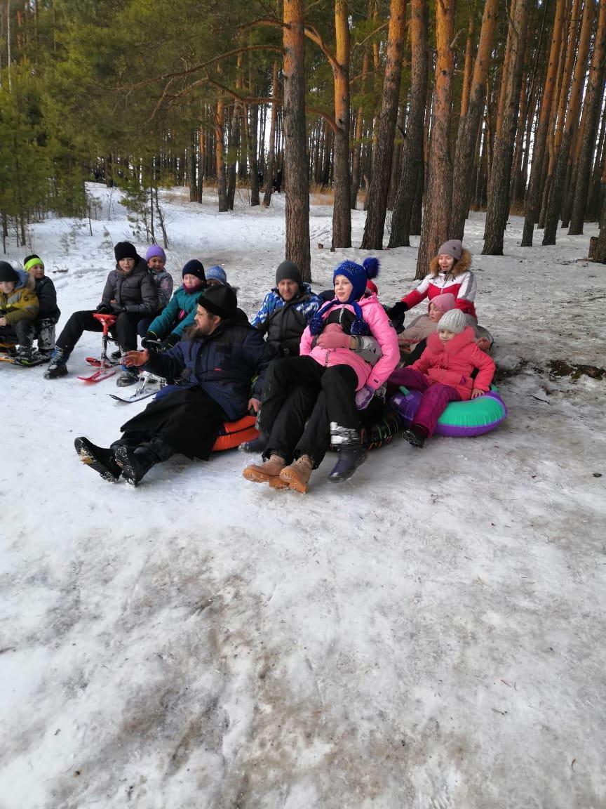 После спектакля маленьких актеров ждал сладкий сюрприз – рождественские подарочки, которые с большой любовью раздавал детям настоятель нашего храма иерей Иоанн Жевлаков. А один особый ребенок, узнавший от взрослых, что подарок послал ему Бог, доставал из кулечка по одной конфете и целовал каждую. Возле храма неравнодушными прихожанами обустроен чудесный снежный вертеп. Огонечки гирлянды таинственно мерцали, освещая в глубине вертепа икону Рождества Христова. В то время, пока дети выступали перед прихожанами и гостями, на улице полным ходом шла своя подготовка – «шеф-повара» Сергей Глебович и Павел готовили на костре плов для общей трапезы. Но на этом совместное празднование не закончилось и мы решили продолжить на свежем воздухе в лесу у речки. Погода разгулялась – яркое солнце и чистое небо подарил Господь нам в тот день. Народу собралось немало. Вместе с детьми катались на бубликах, снегокатах, пили вкусный чай из самовара. Мы все очень хорошо смогли отдохнуть душой и с пользой провели время.