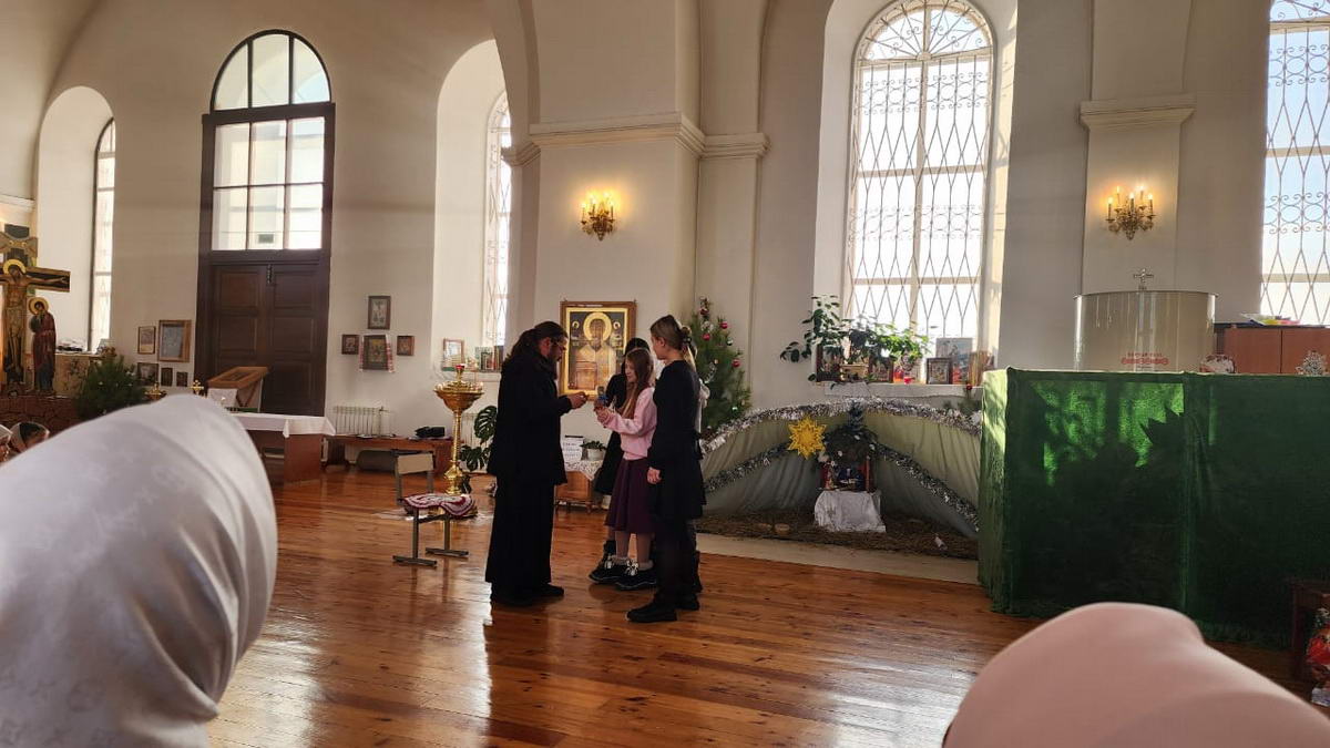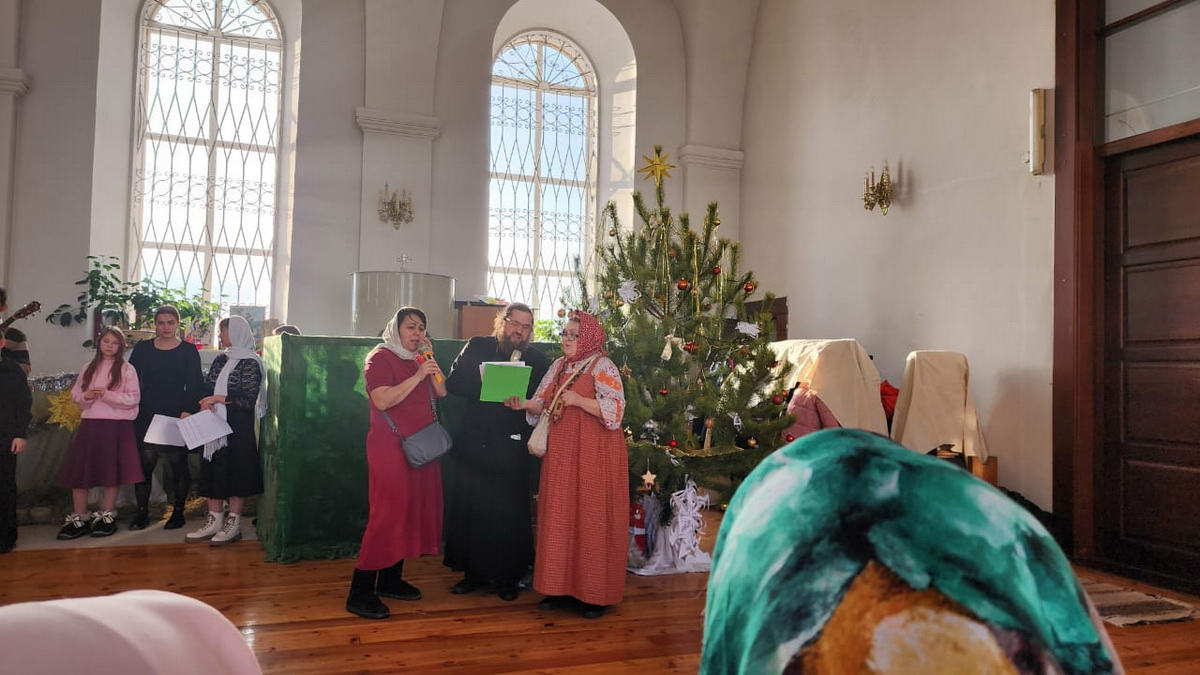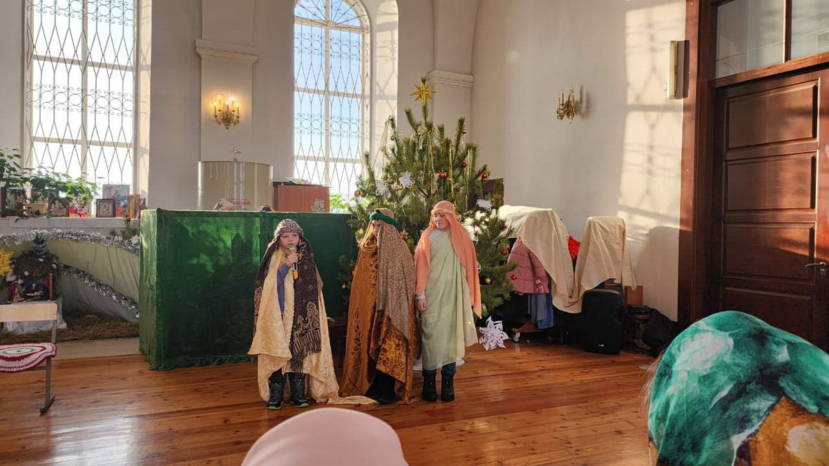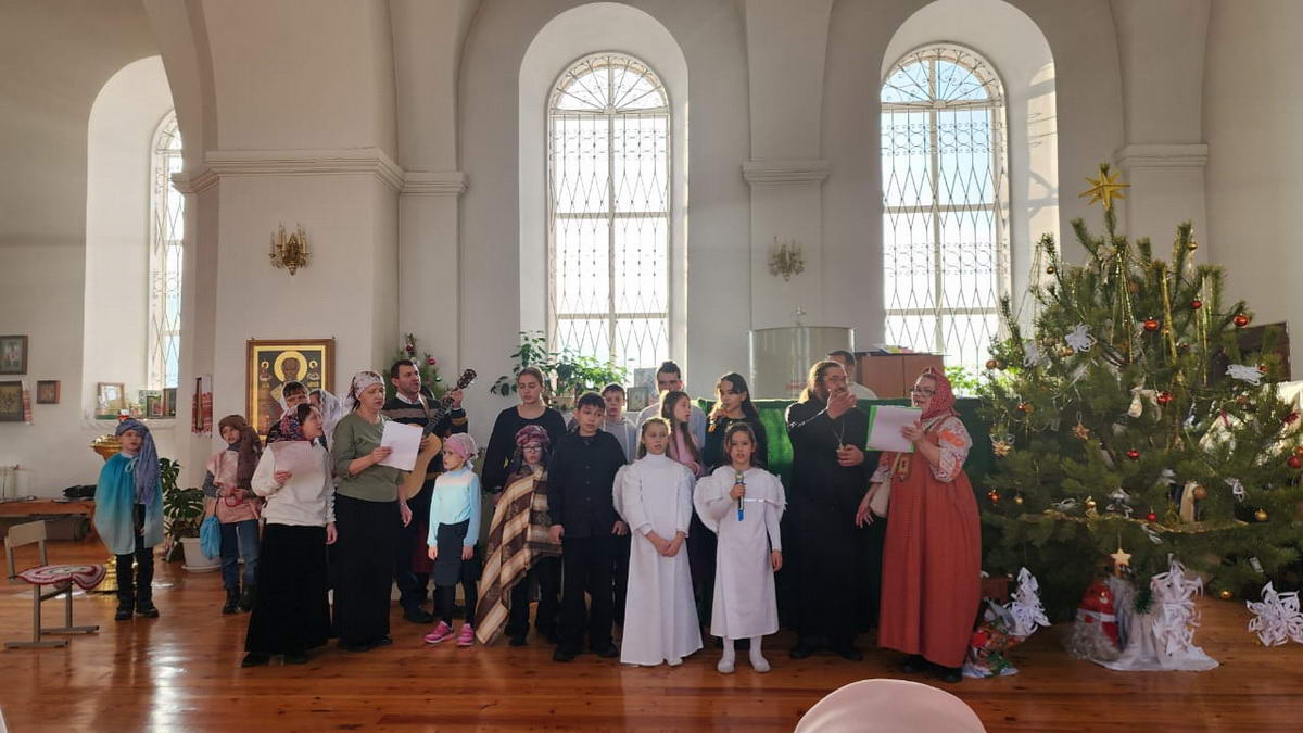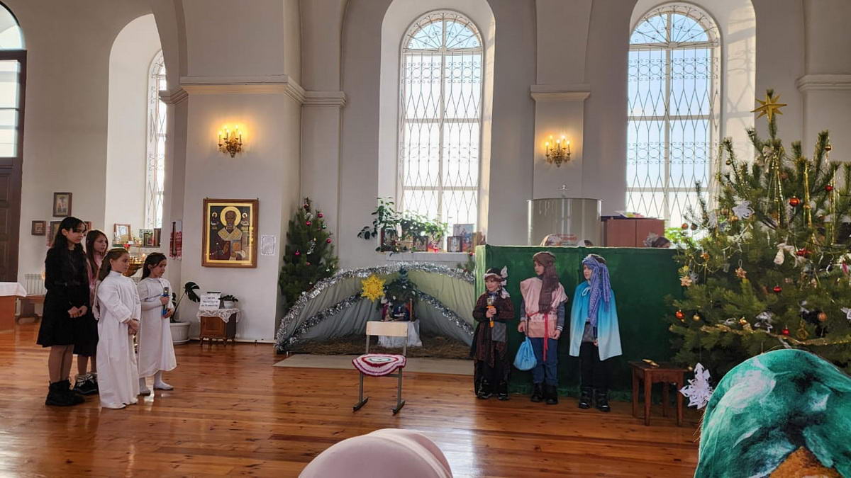 Прихожан и гостей, кто смог остаться в тот день в храме было около 70 - 80 человек. Дети показали спектакль на тему Рождества Иисуса Христа. Дети и взрослые светились радостью, выступление сопровождалось аплодисментами.
