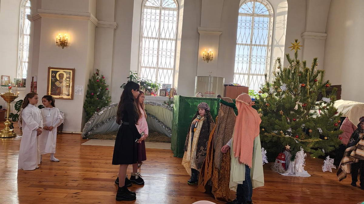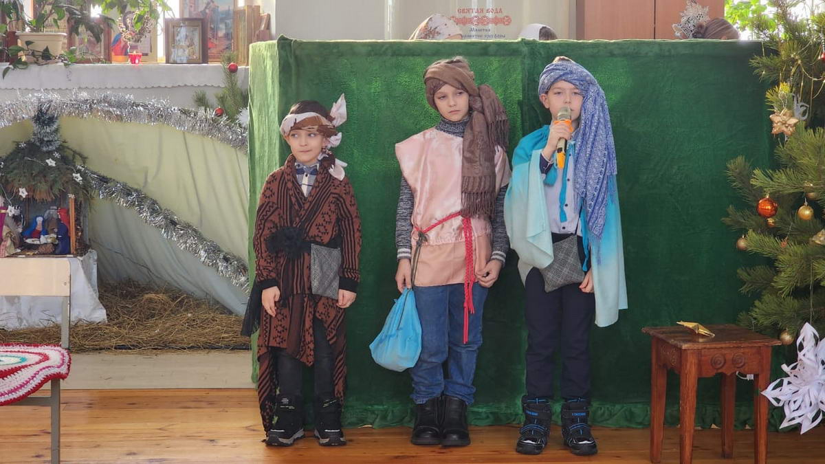 12 января 2025 года после Божественной литургии наши дети и педагоги из Воскресной школы храма во имя святых первоверховных апостолов Петра и Павла села Мостовское Артемовского района организовали и поставили спектакль, посвященный великому и радостному событию, празднику Рождества Христова. Храм был нарядно украшен.