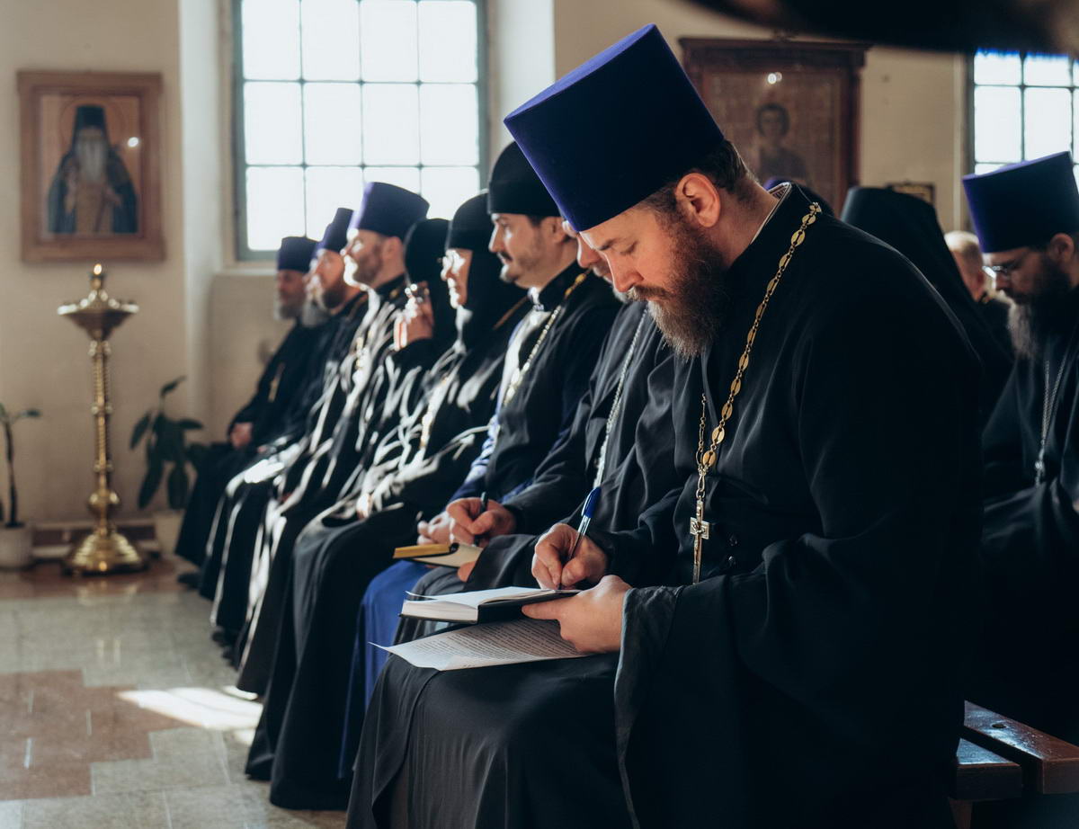 По окончании епархиального собрания состоялось совещания правящего архиерея с благочинными, в ходе которого были более детально рассмотрены важные вопросы работы с муниципалитетами в области духовного окормления семей воинов СВО и взаимодействия в деле реализации модуля Основ Православной Культуры.