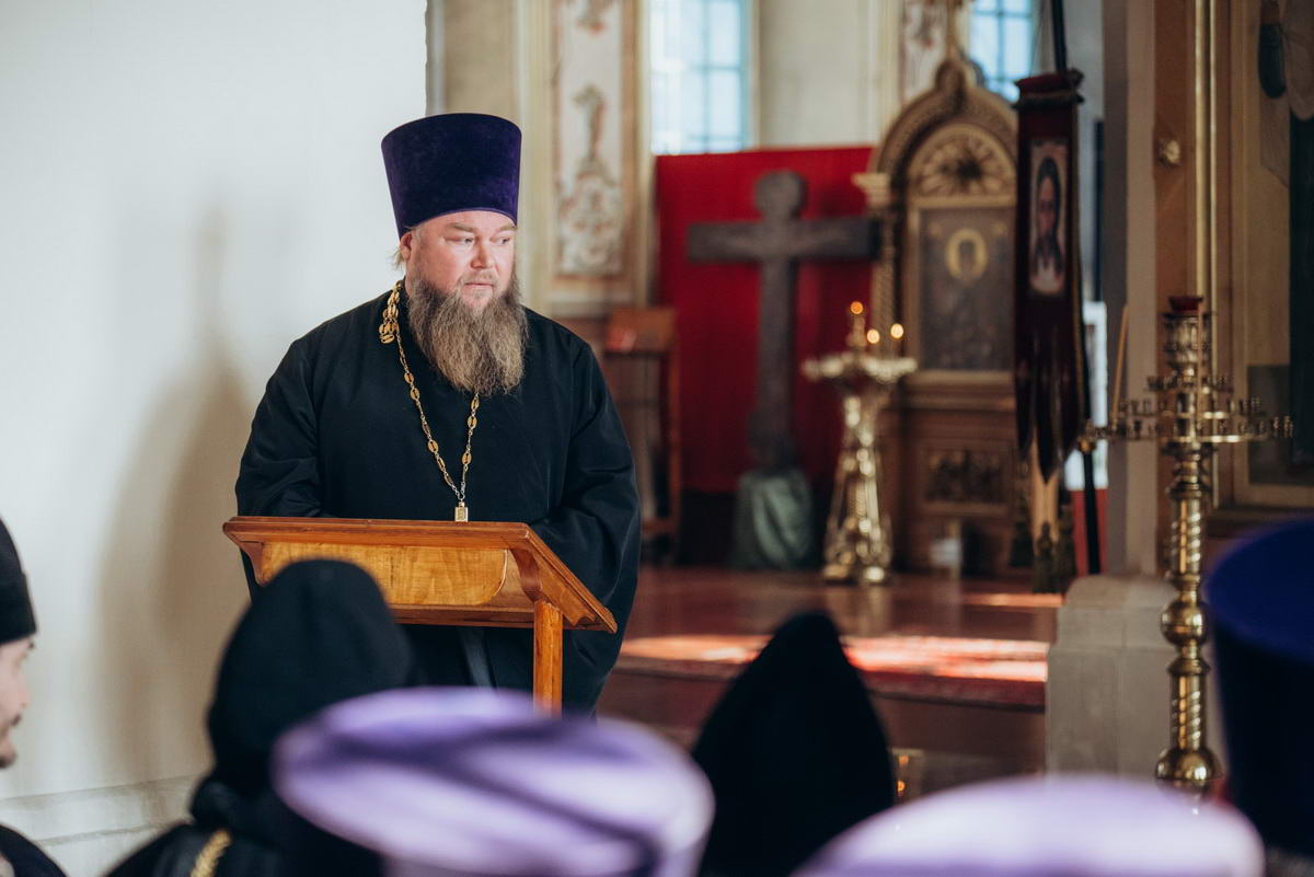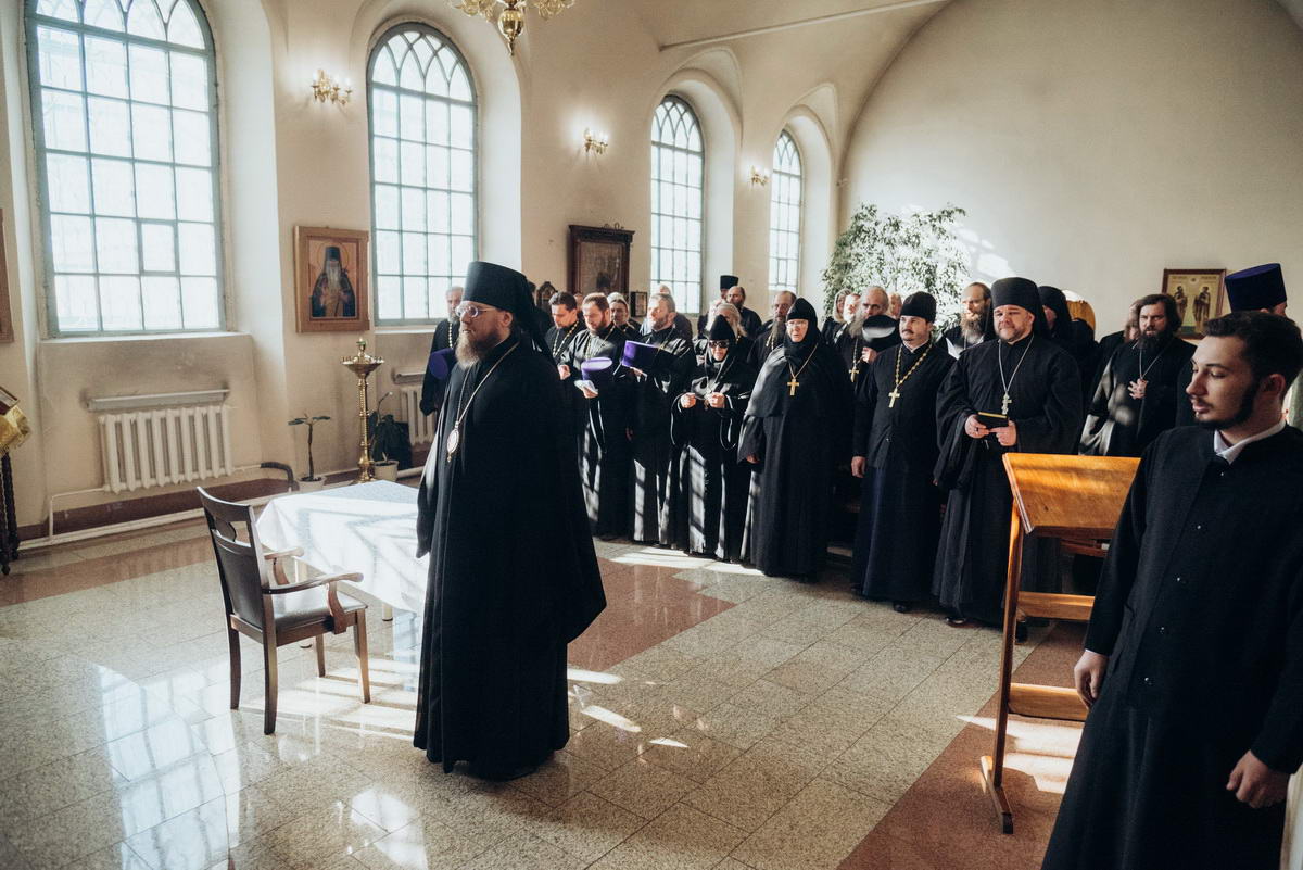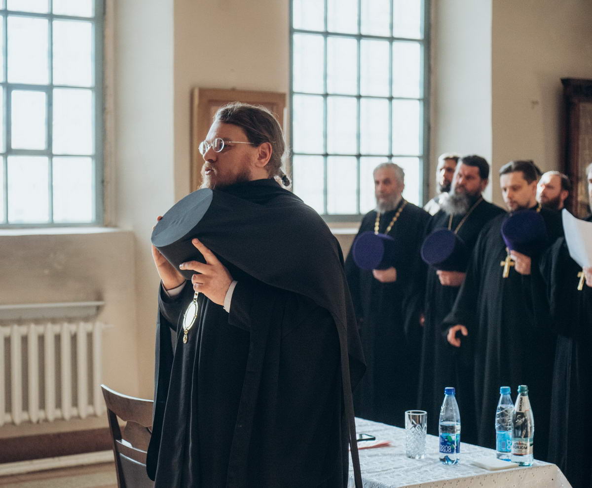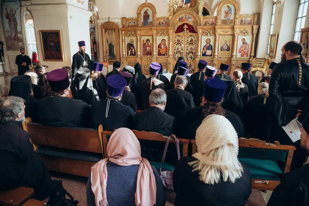 После вступительной молитвы епископ Сергий поприветствовал всех собравшихся. В своём слове Владыка Сергий привел статистические данные по епархии, рассказал о первом посещении благочиний, знакомстве со знаковыми приходами. Преосвященный Сергий высказал пожелания об улучшении ситуации во взаимодействия благочиний с муниципальными образованиями в области религиозного образования, взаимодействие в военными ведомствами и, особенно, в области социального служения.