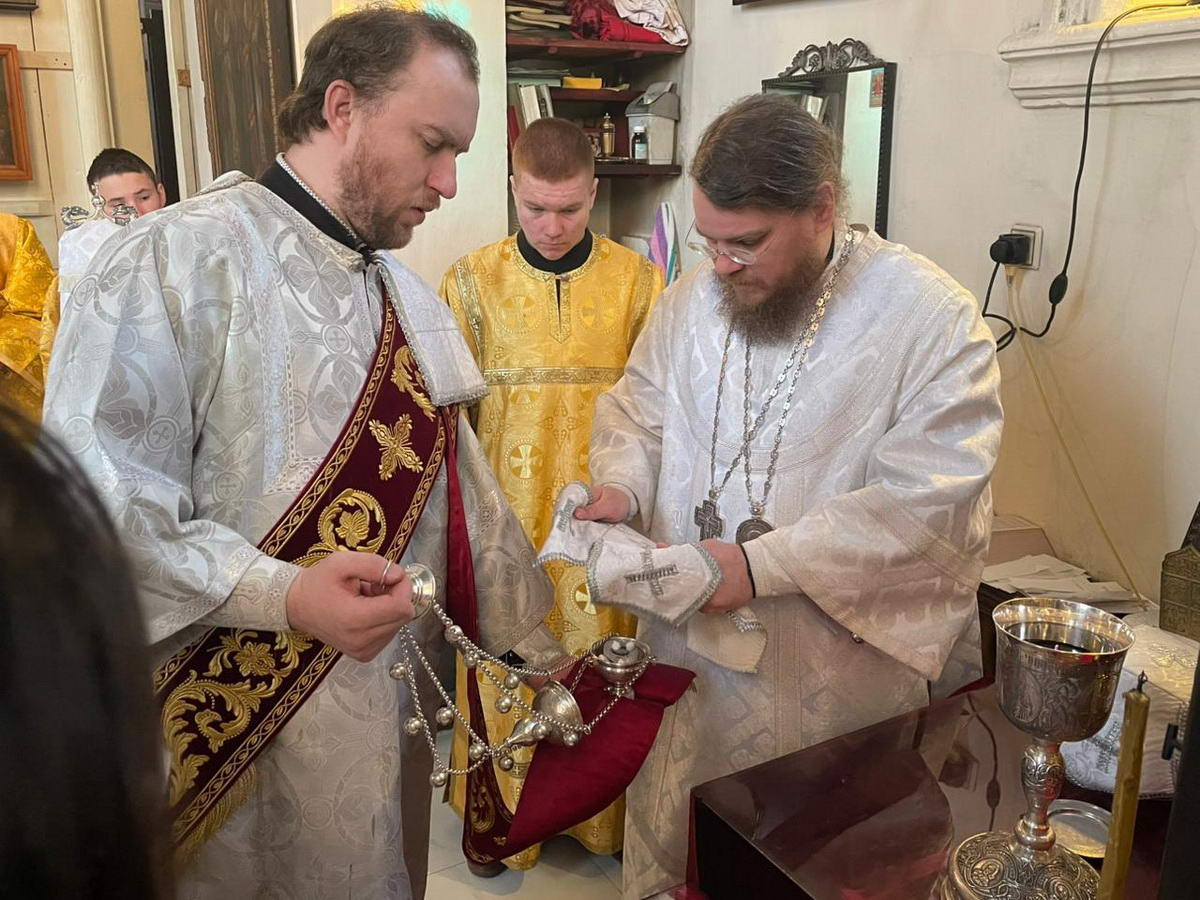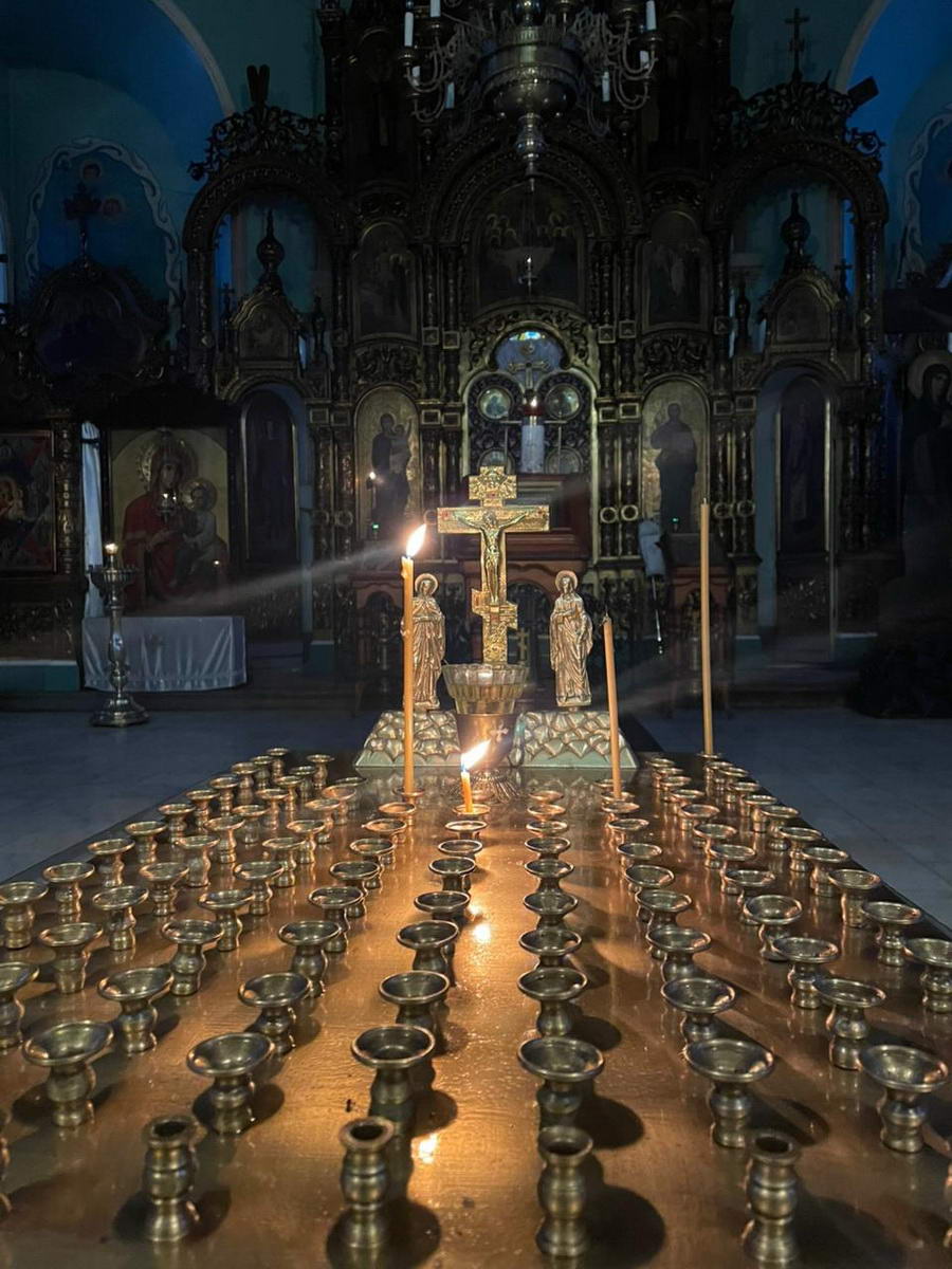 За Божественной литургией были вознесены сугубые прошения и молитва о мире на Святой Руси.