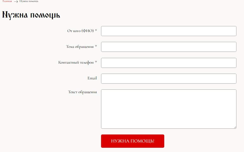 - Отправьте письмо: Заполнив форму, нажмите кнопку "Нужна помощь". Ваше обращение сразу поступит на электронную почту руководителя отдела по церковной благотворительности и дежурного специалиста гуманитарного центра "БлагоДарю".