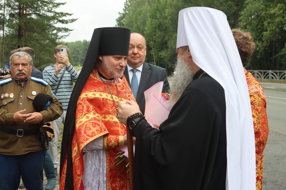 По завершении богослужения состоялся Крестный ход к шахте, куда в 1918 году, в ночь с 17 на 18 июля, живыми были сброшены алапаевские мученики - Великая княгиня Елисавета Феодоровна, ее келейница инокиня Варвара (Яковлева), Великий князь Сергей Михайлович, Князья Императорской крови Иоанн, Константин, Игорь Константиновичи, князь Владимир Палей и секретарь Федор Ремез.