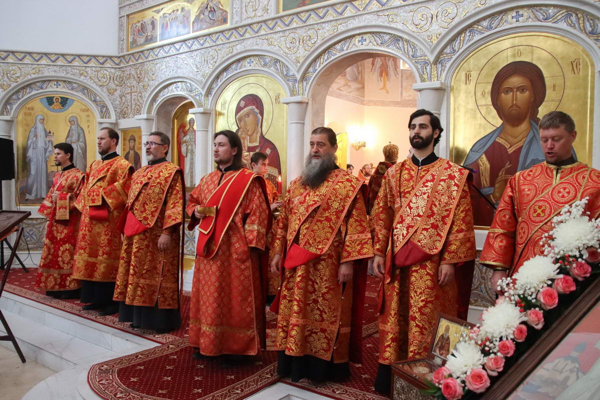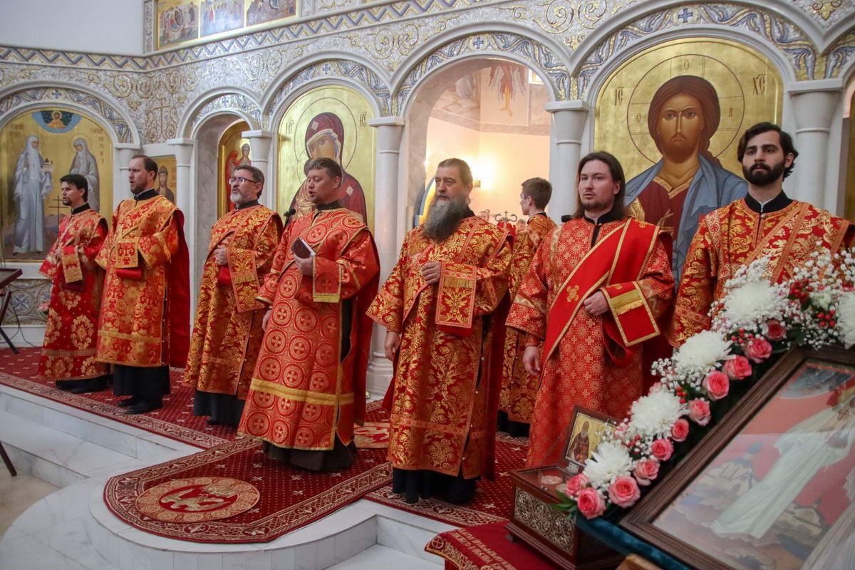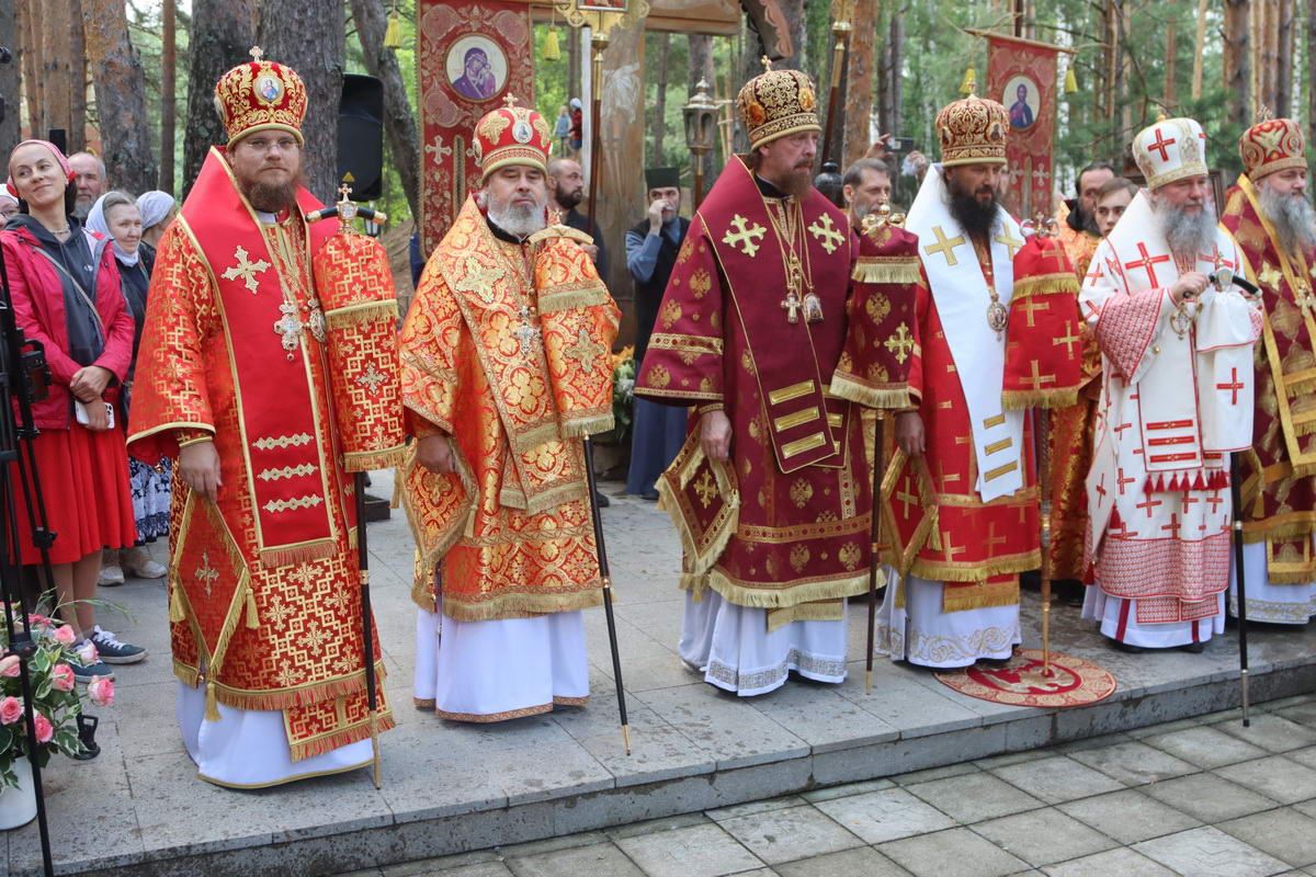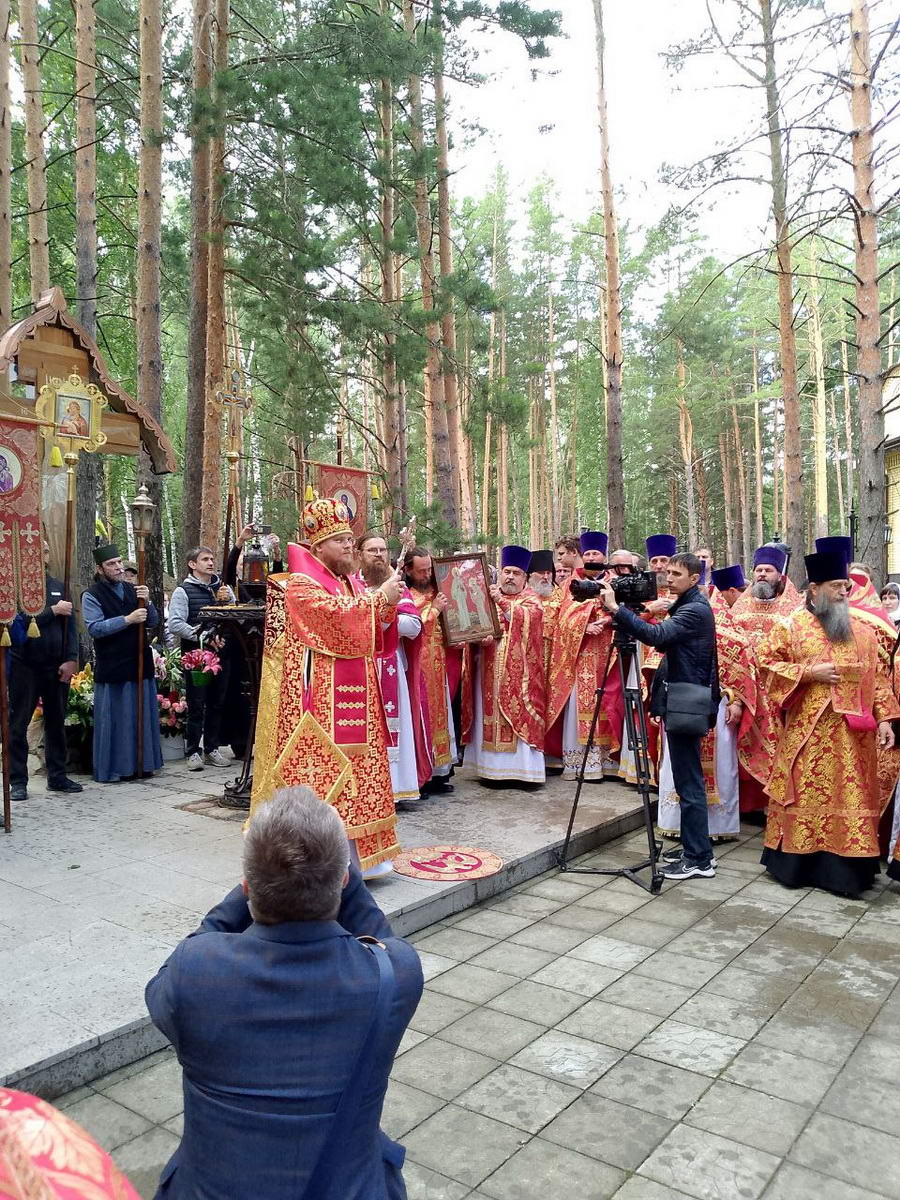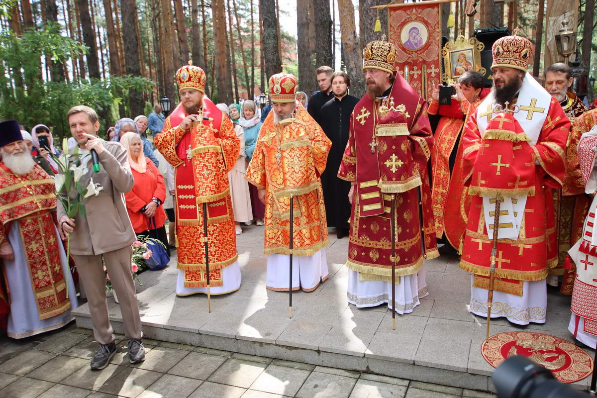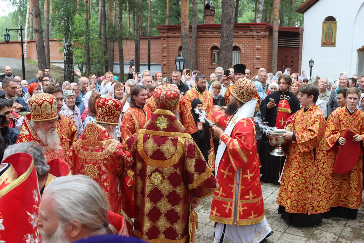 Богослужение возглавил митрополит Екатеринбургский и Верхотурский Евгений, которому сослужил митрополит Челябинский и Миасский Алексий, митрополит Волгоградский и Камышинский Феодор, епископ Нижнетагильский и Невьянский Феодосий, епископ Серовский и Краснотурьинский Феогност, епископ Каменский и Камышловский Мефодий, епископ Алапаевский и Ирбитский Сергий, а также секретарь Екатеринбургской епархии митрофорный протоиерей Николай Ладюк, настоятель обители игумен Моисей (Пилатс) и многочисленное духовенство Екатеринбургской митрополии.