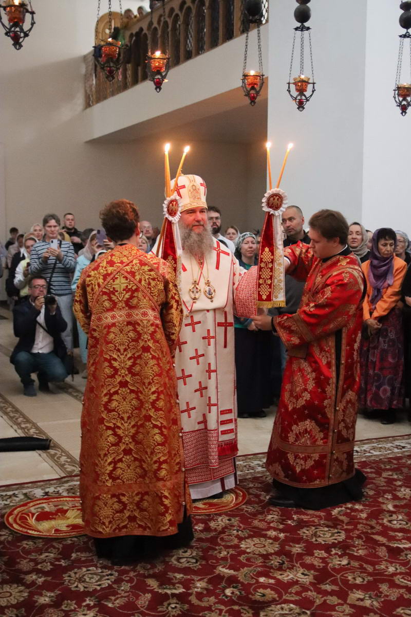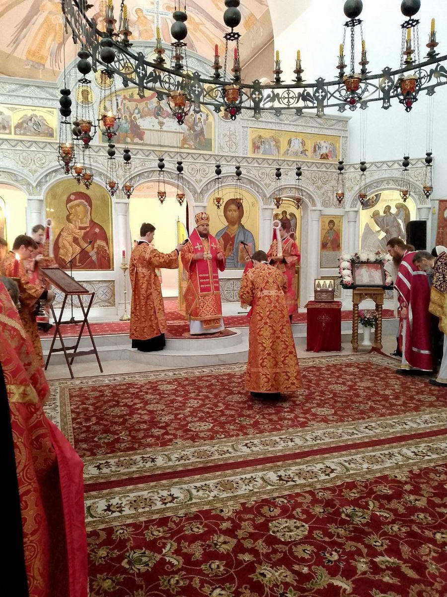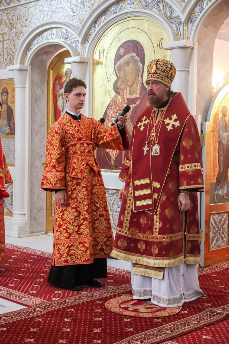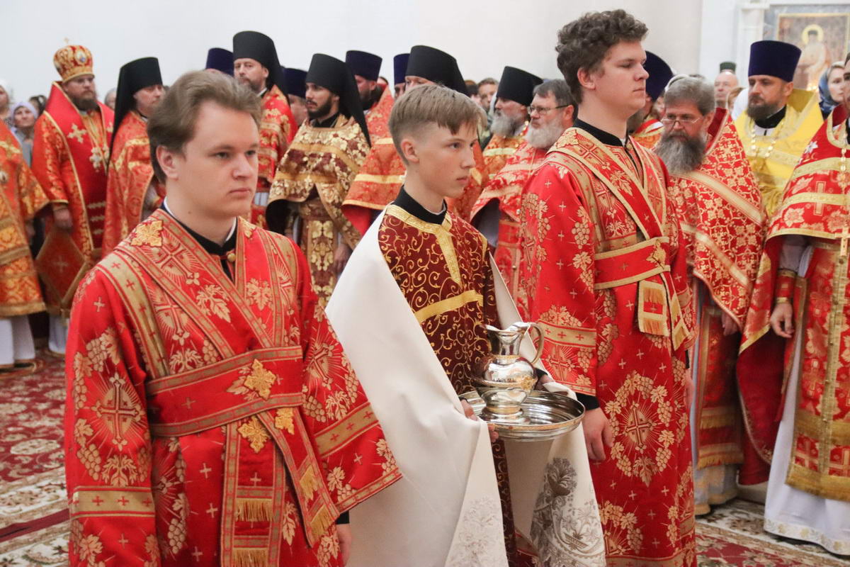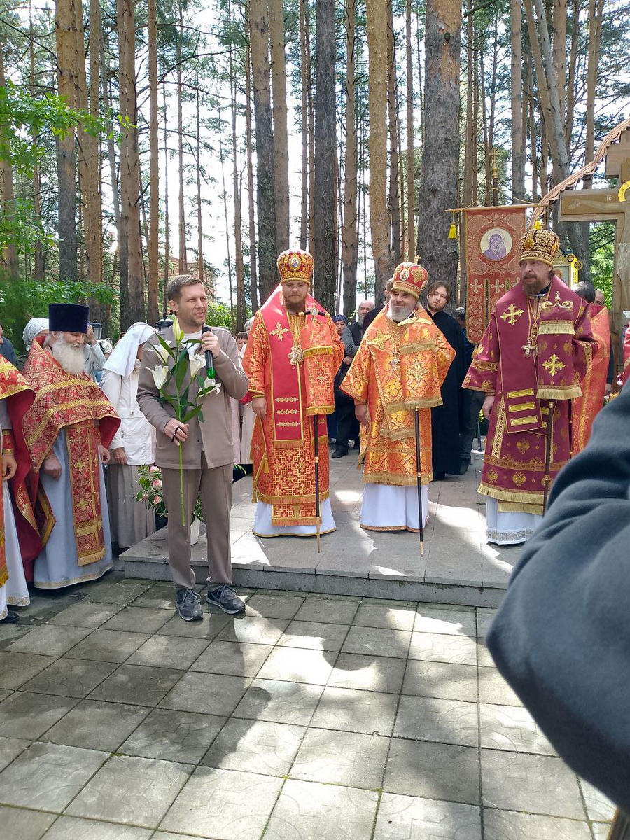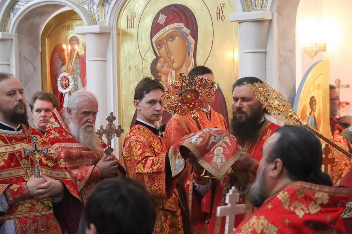 Богослужение возглавил митрополит Екатеринбургский и Верхотурский Евгений, которому сослужил митрополит Челябинский и Миасский Алексий, митрополит Волгоградский и Камышинский Феодор, епископ Нижнетагильский и Невьянский Феодосий, епископ Серовский и Краснотурьинский Феогност, епископ Каменский и Камышловский Мефодий, епископ Алапаевский и Ирбитский Сергий, а также секретарь Екатеринбургской епархии митрофорный протоиерей Николай Ладюк, настоятель обители игумен Моисей (Пилатс) и многочисленное духовенство Екатеринбургской митрополии.