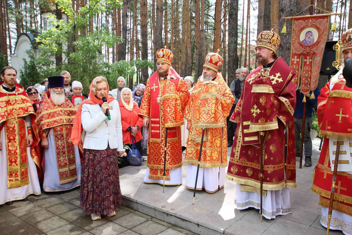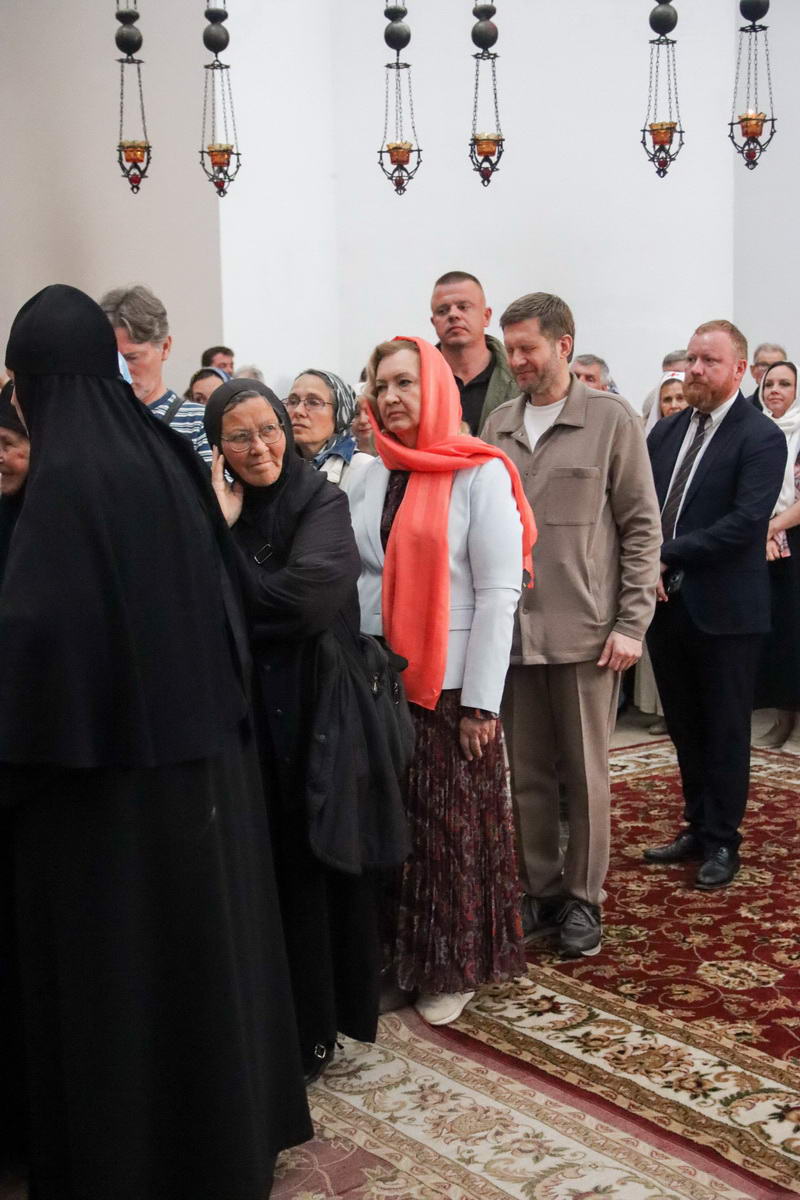 За литургией молились прибывшие на Царские дни участники делегации Фонда Елисаветинско-Сергиевского просветительского общества во главе с главой Фонда Анной Витальевной Громовой, а также руководитель Екатеринбургского отделения Императорского Православного Палестинского Общества Инна Леонидовна Баталова.