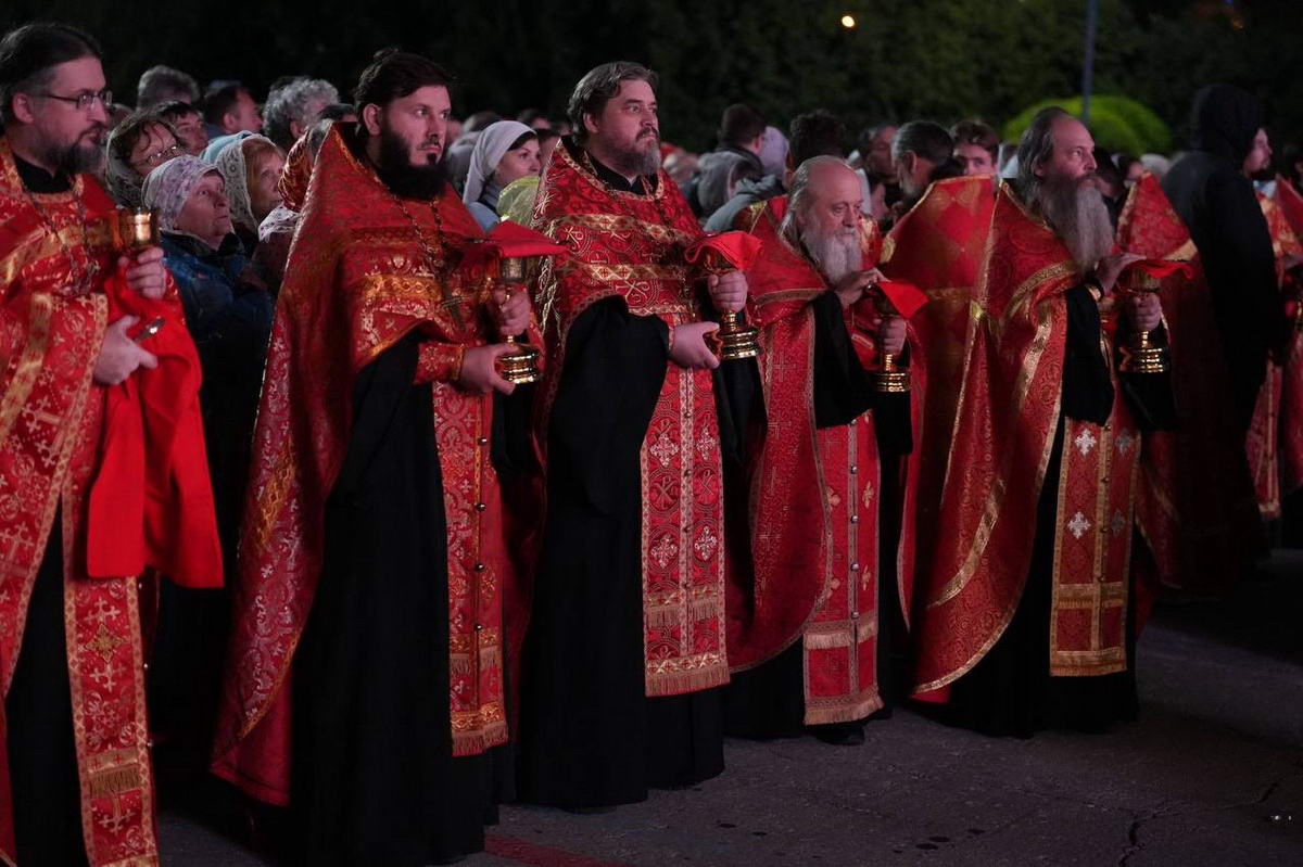 По окончании литургии состоялся многотысячный Царский Крестный ход до монастыря Ганина Яма.