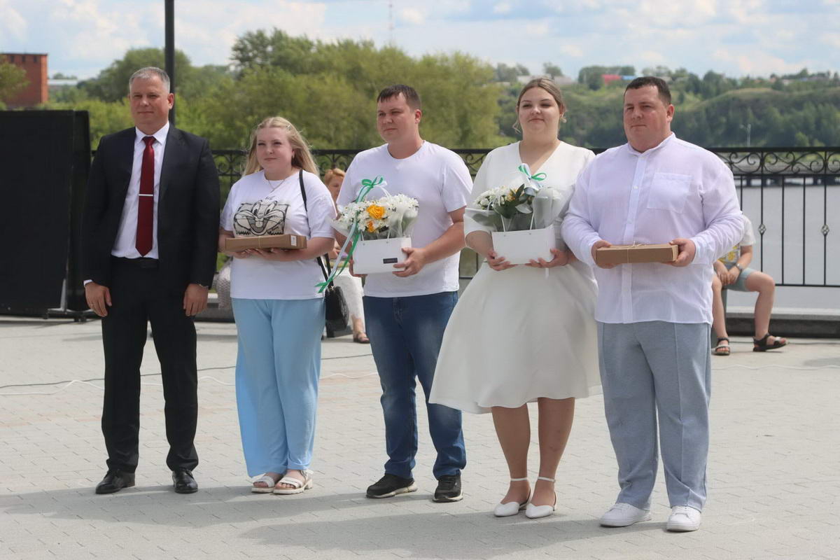 В ходе мероприятия торжественно поздравили и молодоженов, которые только начинают свой семейный путь. Две молодые супружеские пары нашего города дали очень красивую клятву при всем собрании людей.