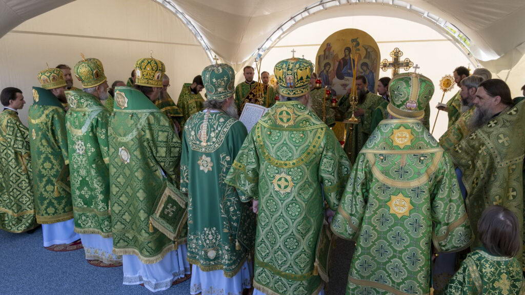 Главное событие дня — божественная литургия, которую возглавил митрополит Екатеринбургский и Верхотурский Евгений. Вместе с ним службу провели глава Каменской епархии епископ Каменский и Камышловский Мефодий, а также архиереи Екатеринбургской, Челябинской и Курганской митрополии: митрополит Челябинский и Миасский Алексий, епископ Нижнетагильский и Невьянский Феодосий, епископ Шадринский и Далматовский Владимир, епископ Алапаевский и Ирбитский Сергий. На общую молитву съехались священнослужители и миряне со всех приходов Каменской епархии.