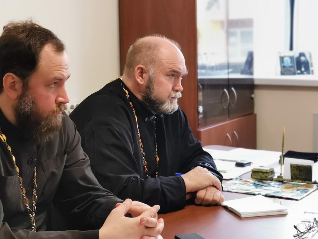 30 апреля в здании епархиального управления под председательством Преосвященнейшего епископа Алапаевского и Ирбитского Сергия состоялось собрание руководителей профильных отделов епархии. На собрании присутствовали: секретарь Алапаевской епархии иерей Димитрий Ямщиков, руководитель миссионерского отдела иеромонах Серафим (Шанин), руководитель молодежного отдела иерей Владислав Першин, руководитель отдела по взаимодействию с вооруженными силами иерей Игорь Трошин, руководитель отдела по взаимодействию с казачеством иерей Игорь Аксёнов, ответственный за книгораспространение в епархии иерей Иоанн Жевлаков, координатор по утверждении трезвости иерей Сергий Беляков, руководитель епархиального социального отдела схимонах Василиск (Савельев), руководитель епархиального ОРОиК Одинцова Галина Анатольевна. Традиционно работа собрания началась с пения молитвы «Христос Воскресе». В ходе работы собрания был рассмотрен ряд актуальных вопросов в деятельности профильных отделов. Все участники собрания смогли высказать свои предложения по дальнейшему развитию.