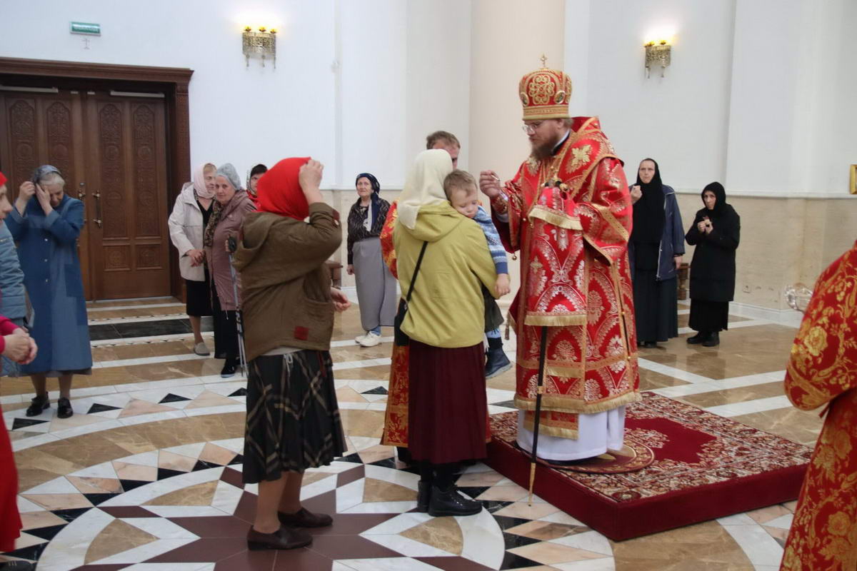 За всенощным бдением было совершено помазание всех прихожан освященным на литии елеем.