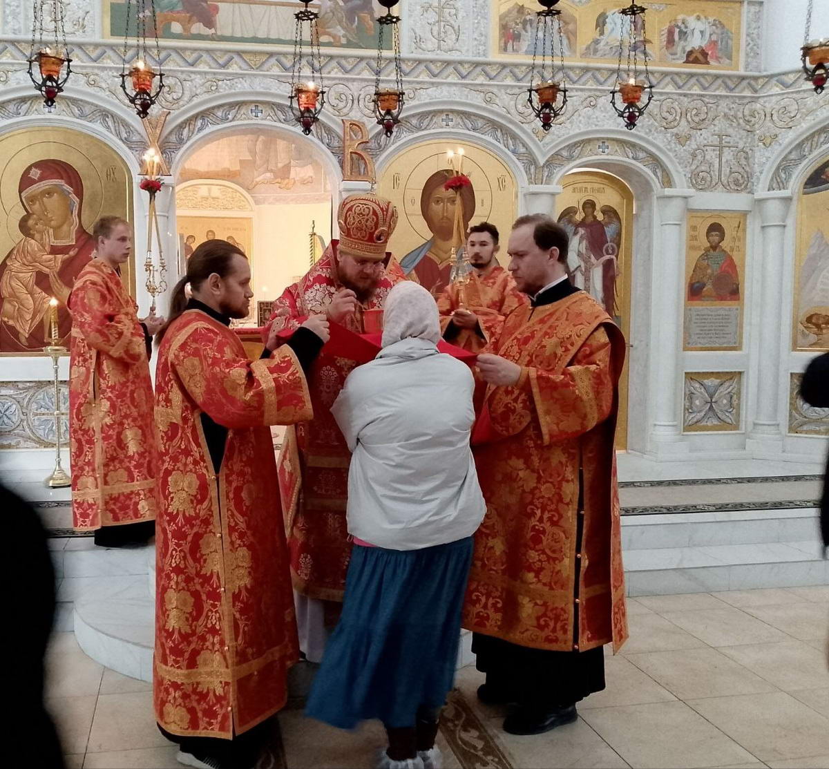 За богослужением права ношения наперсного креста был удостоен насельник мужского монастыря Новомучеников и исповедников Церкви Русской иеромонах Варсонофий (Молчанов).