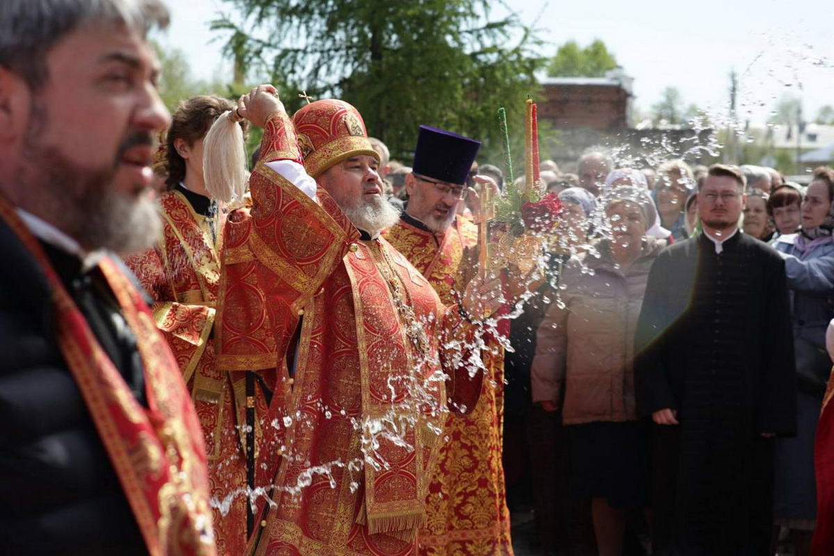 По окончании литургии состоялся торжественный крестный ход вокруг храма.