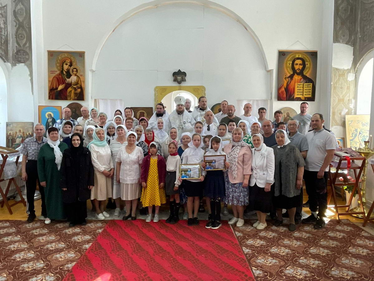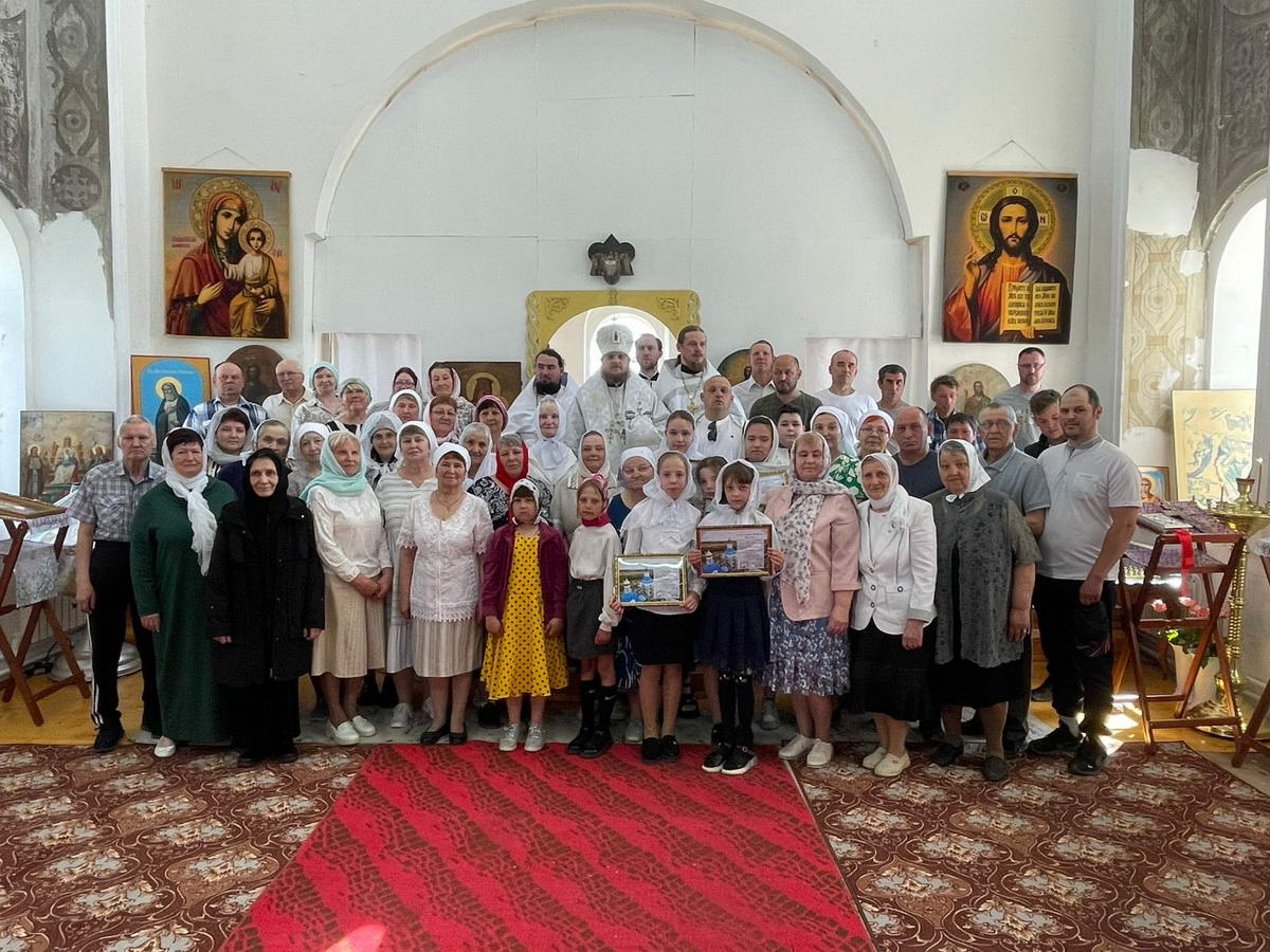 В завершение литургии состоялся Крестный ход вокруг храма, после чего епископ Сергий в своём архипастырском слове поблагодарил всех собравшихся за теплый прием. Кроме того, в этот важный для всех прихожан день Владыка Сергий вручил благодарственные письма школьникам из с. Голубковское за участие в подготовке престольного праздника и украшение храма. А ещё задолго до этого дня детей начали обучать звонить в колокола. И в этот праздничный день детишки после службы показали мастер-класс по колокольному звону для всех собравшихся.