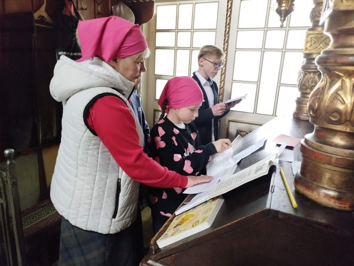 Юные чтецы заблаговременно приготовили Часословы, благословились у священника и с небольшим волнением приступили к молитве. Дети читали часы, тропари и кондаки, богослужебную книгу Апостол, молитвы ко Святому Причащению.