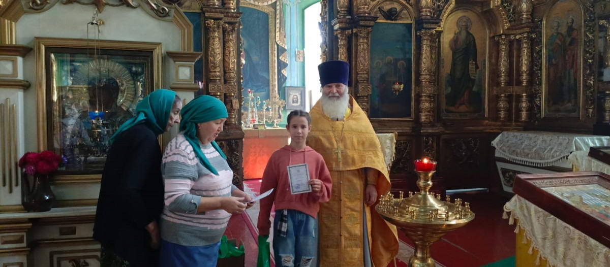 После литургии настоятель Подворья протоиерей Николай Решетников совершил молебен на начало учебного года, на который были приглашены воспитанники Ирбитского центра социальной помощи семье и детям. Ольга Георгиевна Гордуладзе, помощник благочинного, позаботилась о подарках от Алапаевской епархии – канцтоварах к учебному году. Отец Николай вручил их ребятам и еще сертификаты, которые подготовила Ирина Владимировна Судницына, за участие в акции Алапаевской епархии “Белый цветок”.