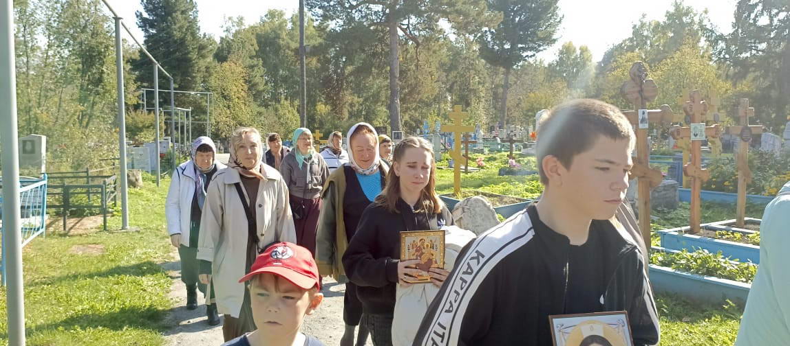 Далее все радостные шли крестным ходом вокруг храма, ребята несли хоругви, иконы святых угодников Божиих, пели “Царю Небесный”.