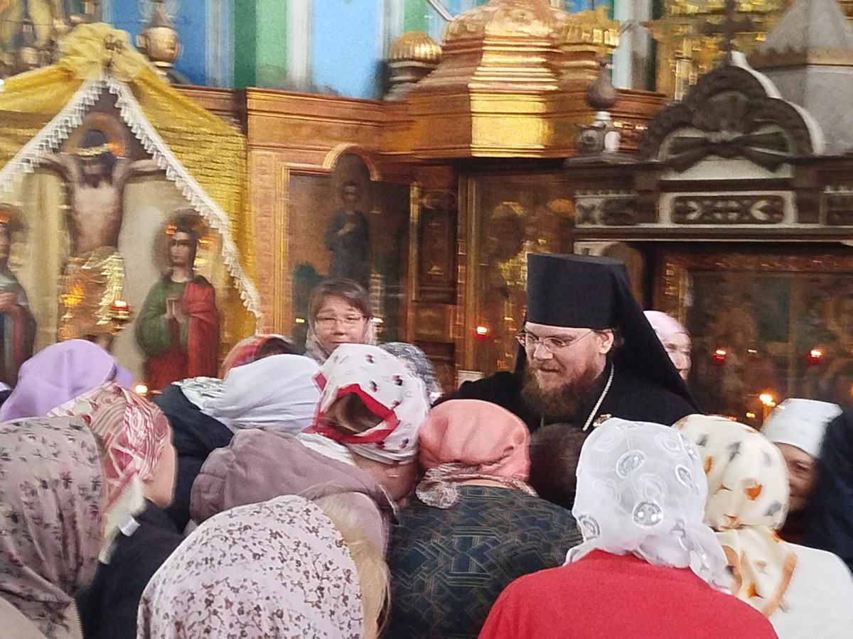 В завершение литургии состоялось поклонение Кресту Господню, после чего Владыка Сергий обратился к собравшимся с архипастырским словом, в котором поздравил прихожан с днями попразднства Воздвижения Креста Господня и поблагодарил духовенство, хор и мирян за общую молитву в этот воскресный день.