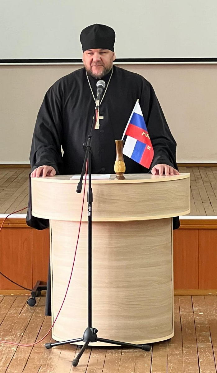 С приветственным словом и докладом выступил иеромонах Серафим (Шанин), руководитель Отдела по миссионерскому служению Алапаевской епархии. Его выступление было посвящено духовным основам противодействия экстремистским проявлениям и важности нравственного воспитания молодежи.