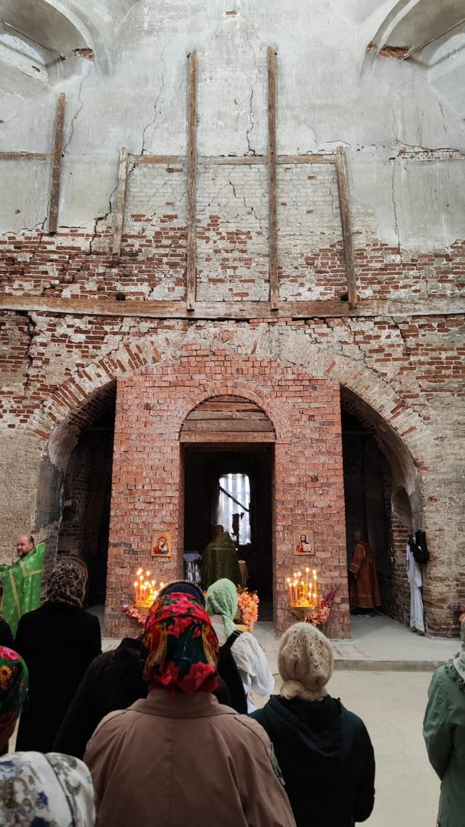 За литургией молились свыше 60 человек. Прихожане пришли молитвенно прославить праведного Симеона Верхотурского и помолиться ему о восстановлении храма.