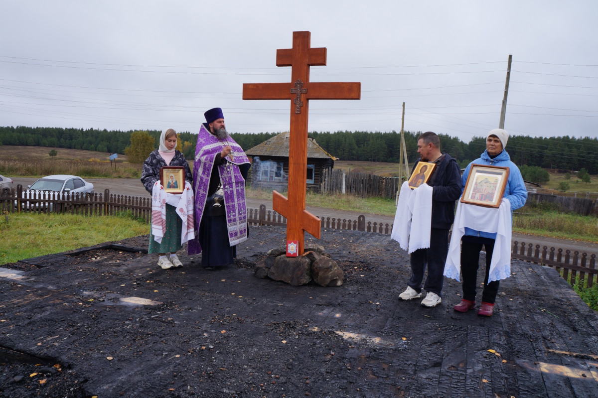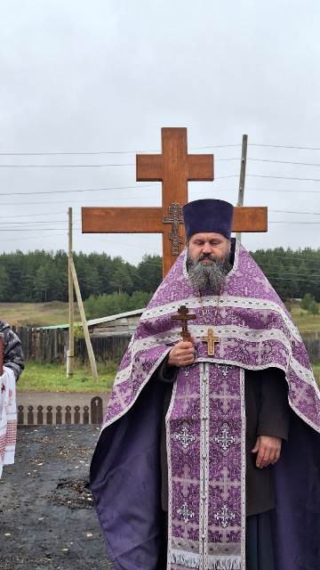 Чин освящения новосооруженного креста, по благословению епископа Алапаевского и Ирбитского Сергия, совершил настоятель храма иерей Андрей Малашенко.
