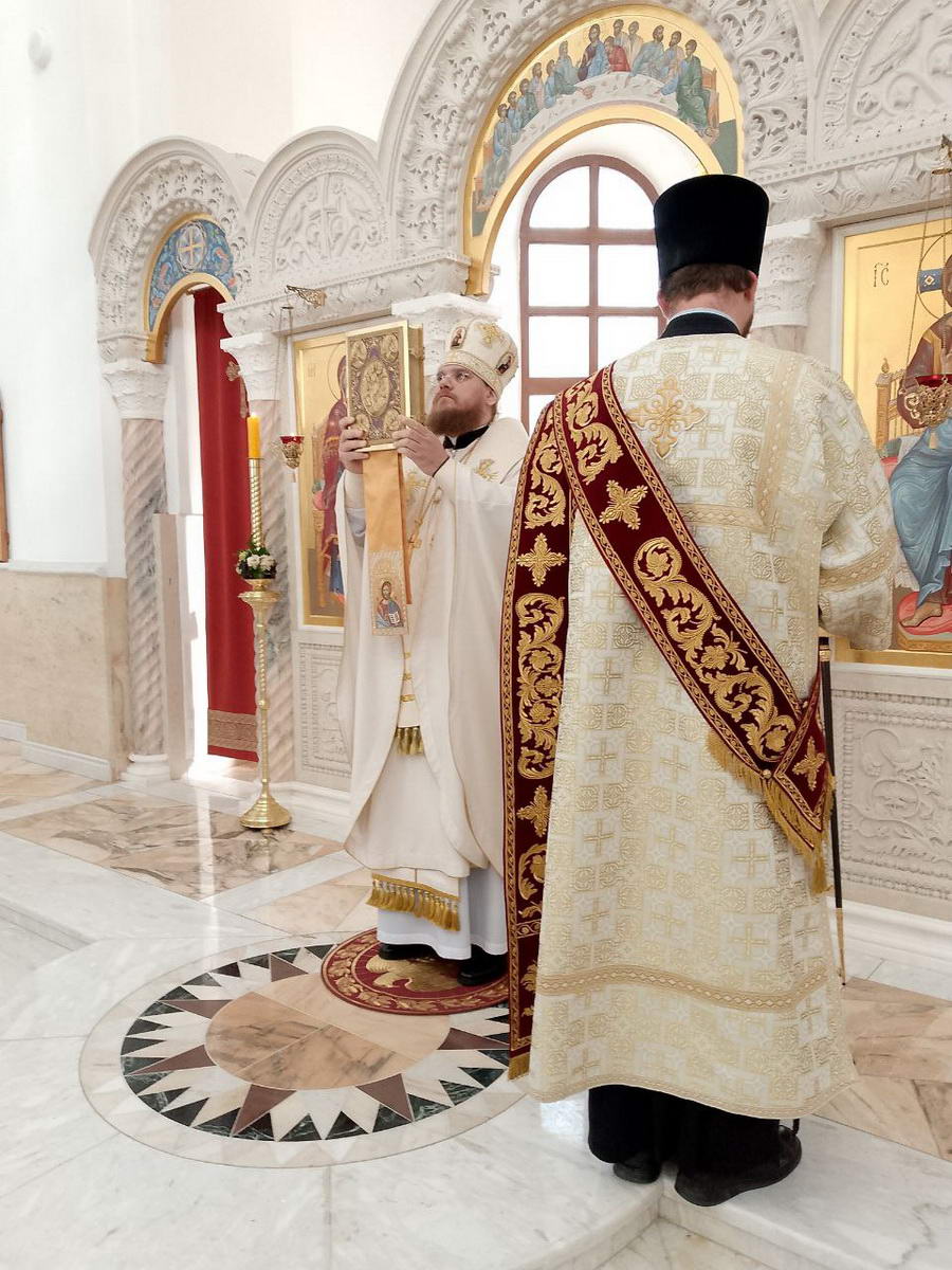 В завершение литургии епископ Сергий обратился к собравшимся с архипастырским словом, в котором рассказал о Евангельской притче о званных на брачный пир, прочитанной за литургией. "Все люди призваны быть в Царствии Небесном. Но, как в притче сказано, каждый занят какими-то своими важными делами. И хоть сам Господь зовет к Себе, многие не желают идти на этот пир в Царство Небесное. В притче мы видим и то, как среди гостей оказался человек не в брачной одежде. Конечно, это всё иносказательно, но понятно нам, что это одежда подразумевает наши добрые дела, исполнение Закона Божиего. Господь всех, без исключения, призывает на этот пир, не каких-то избранных, а каждого человека. Все призваны стать святыми. Но при этом выбор Господь оставляет за каждым из нас. Выбор, который делает только сам человек. Все мы призваны быть наследниками Царствия Небесного.