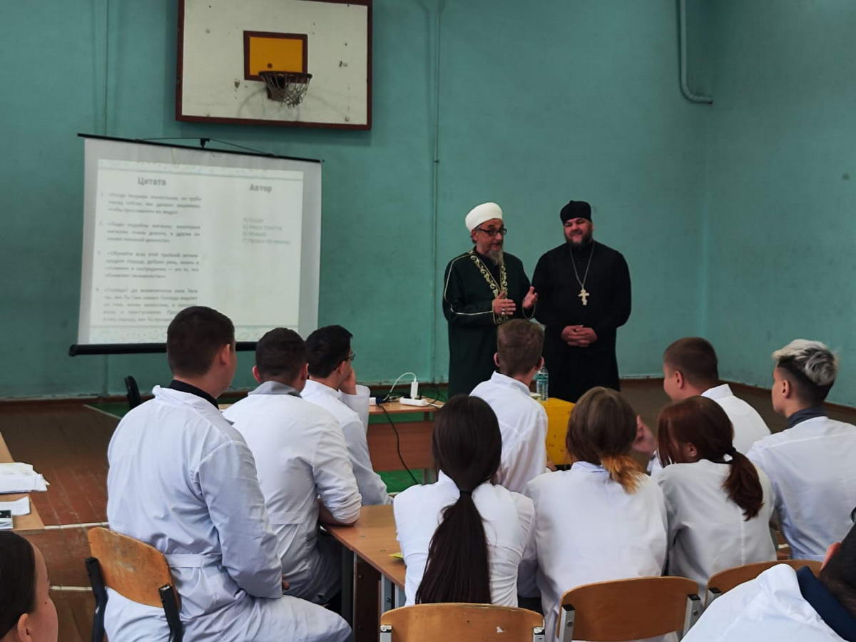 Параллельно со студентами-медиками была проведена игра-олимпиада "Свет веры: традиционные религии России". После чего каждый студент приняли участие в межконфессиональной встрече-экскурсии, которая состоялась в алапаевской мечети "Сафар" и в мужском монастыре новомучеников и исповедников Церкви Русской. Имам Ризван-хазрат Муртазалиев и иеромонах Серафим (Шанин) представили гостям особенности своих религиозных традиций и культуры.