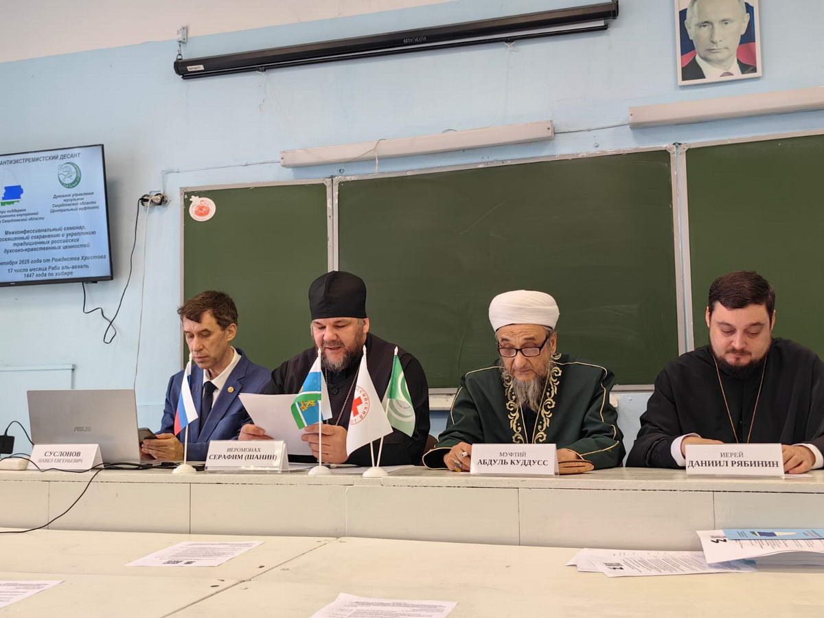 9 сентября 2025 года по благословению епископа Алапаевского и Ирбитского Сергия и.о.руководителя миссионерского отдела Алапаевской епархии иеромонах Серафим (Шанин) принял участие в межконфессиональном семинаре, посвященном российским традиционным духовно-нравственным ценностям. Мероприятие прошло на базе Алапаевского филиала Свердловского областного медицинского колледжа, куда собрались педагоги городских школ. На семинаре отец Серафим зачитал приветственное слово епископа Алапаевского и Ирбитского Сергия, в котором владыка сделал особый акцент на ценности жизни и призвал педагогов проявлять активную позицию в борьбе с абортами. Также на семинаре выступили председатель Духовного управления мусульман Свердловской области Центральный муфтият муфтий Абдуль Куддусс Ашарин, председатель Миссионерского отдела Екатеринбургской епархии Русской Православной Церкви иерей Даниил Рябинин, консультант отдела этноконфессиональных отношений Департамента внутренней политики Свердловской области Павел Суслонов, заместитель председателя Думы г. Алапаевск Галина Канахина.