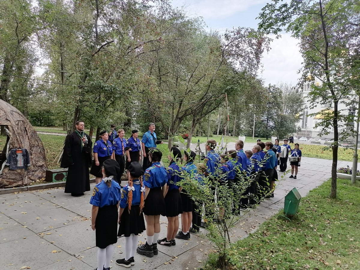 На территории Вознесенского подворья проходило построение православных следопытов, не могли удержаться, сфотографировали. После чайной паузы все разошлись по секциям.