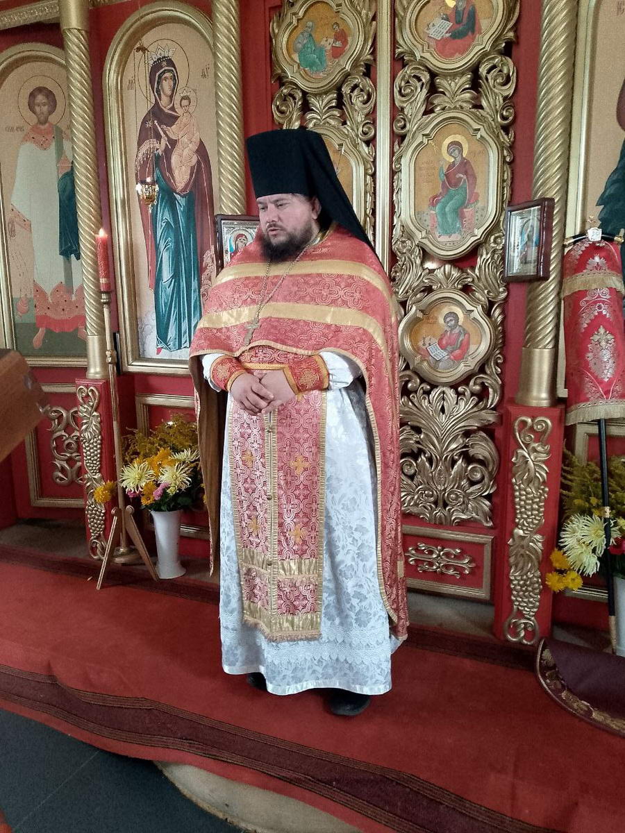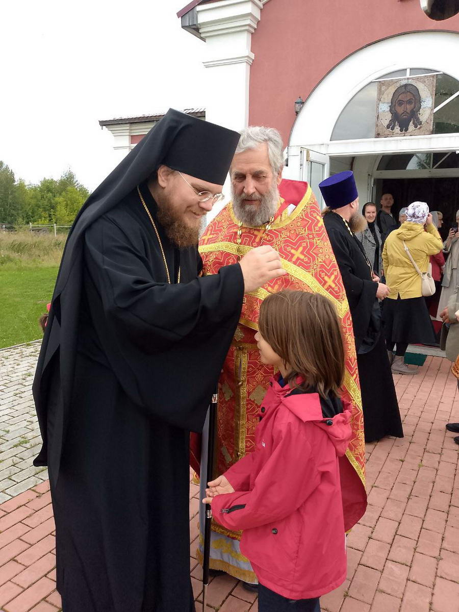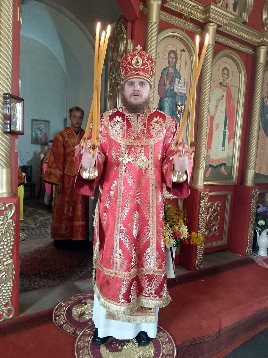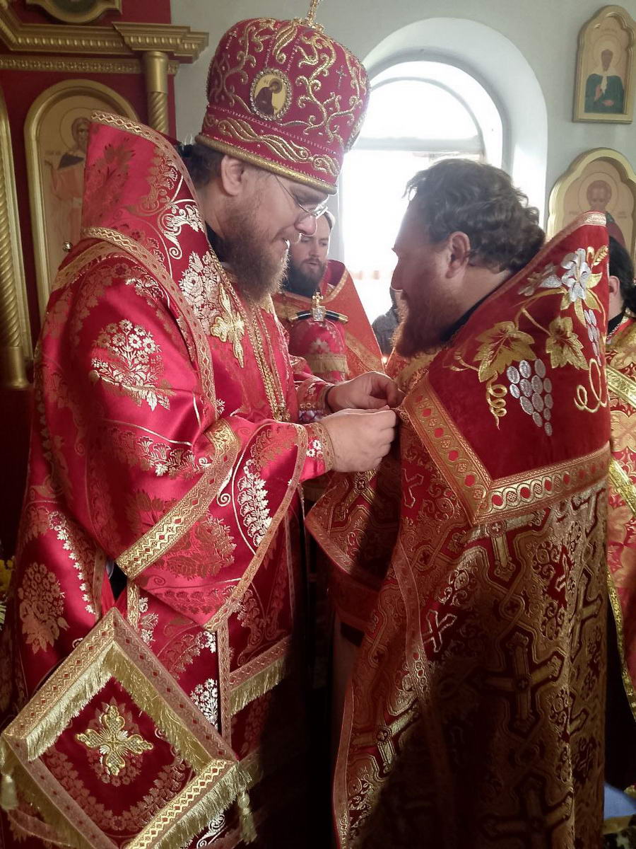 В завершение литургии епископ Сергий, в честь 20-летия пресвитерской хиротонии, вручил патриаршую награду настоятелю Покровского храма с. Покровское протоиерею Дионисию Корепанову.