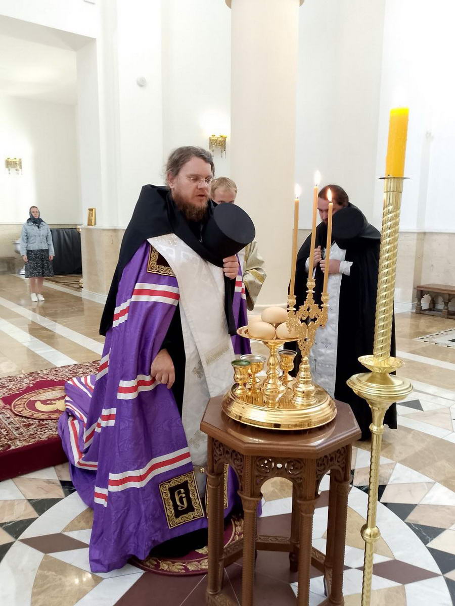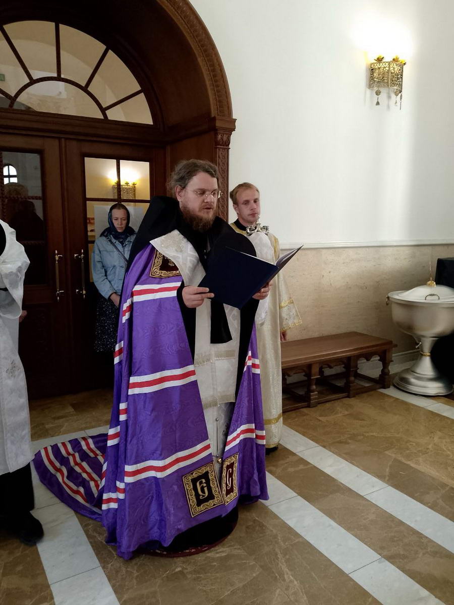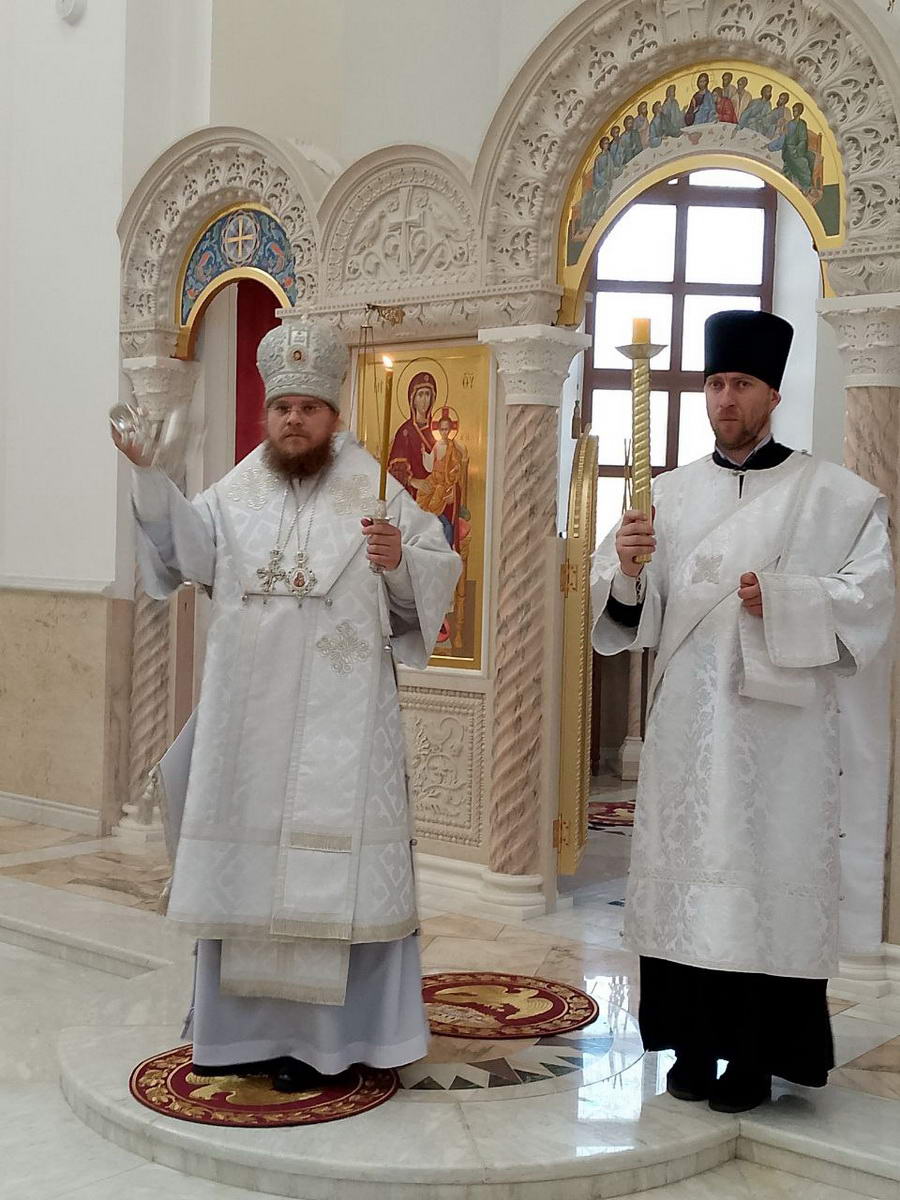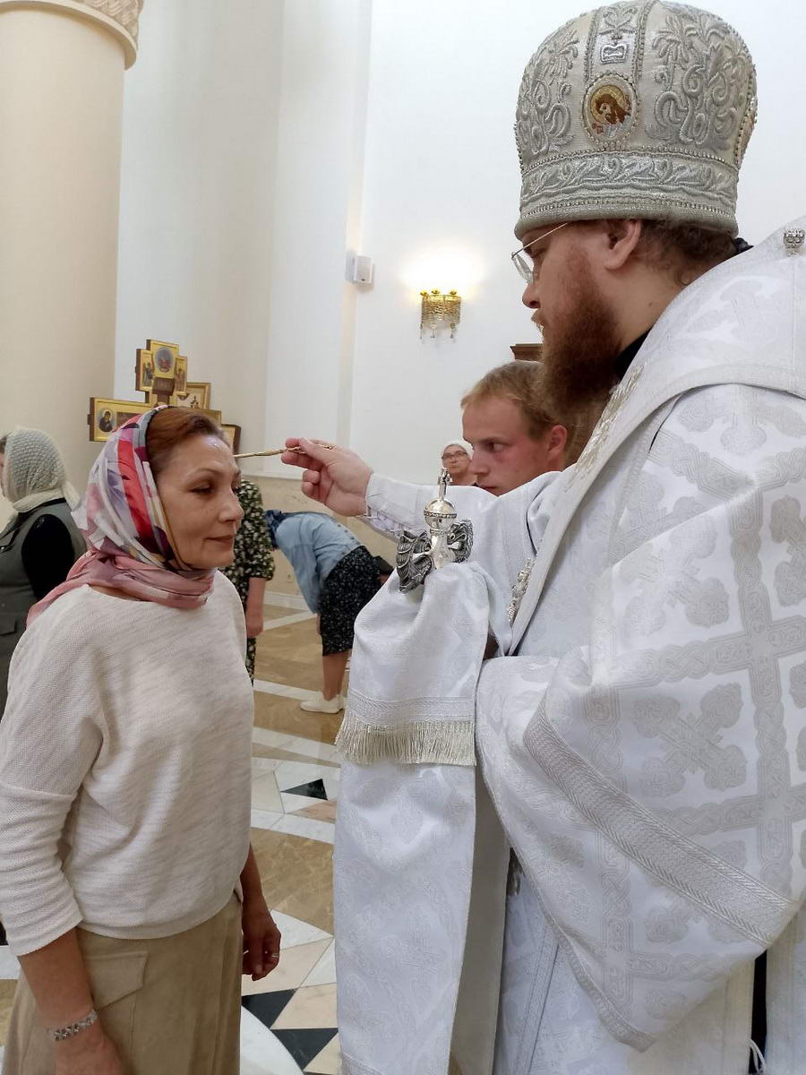 За всенощным бдением состоялось помазание прихожан освященным на литии елеем. В завершение богослужения настоятель храма отец Владислав поблагодарил прихожан за молитву и пригласил на предстоящую завтра Божественную литургию архиерейским чином.