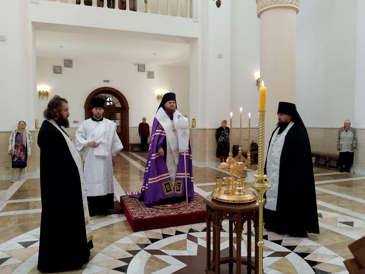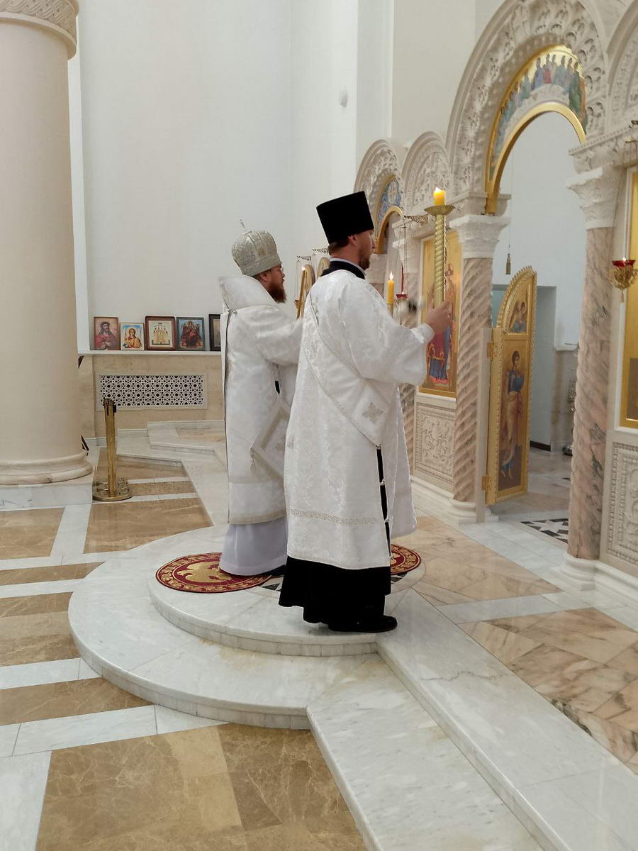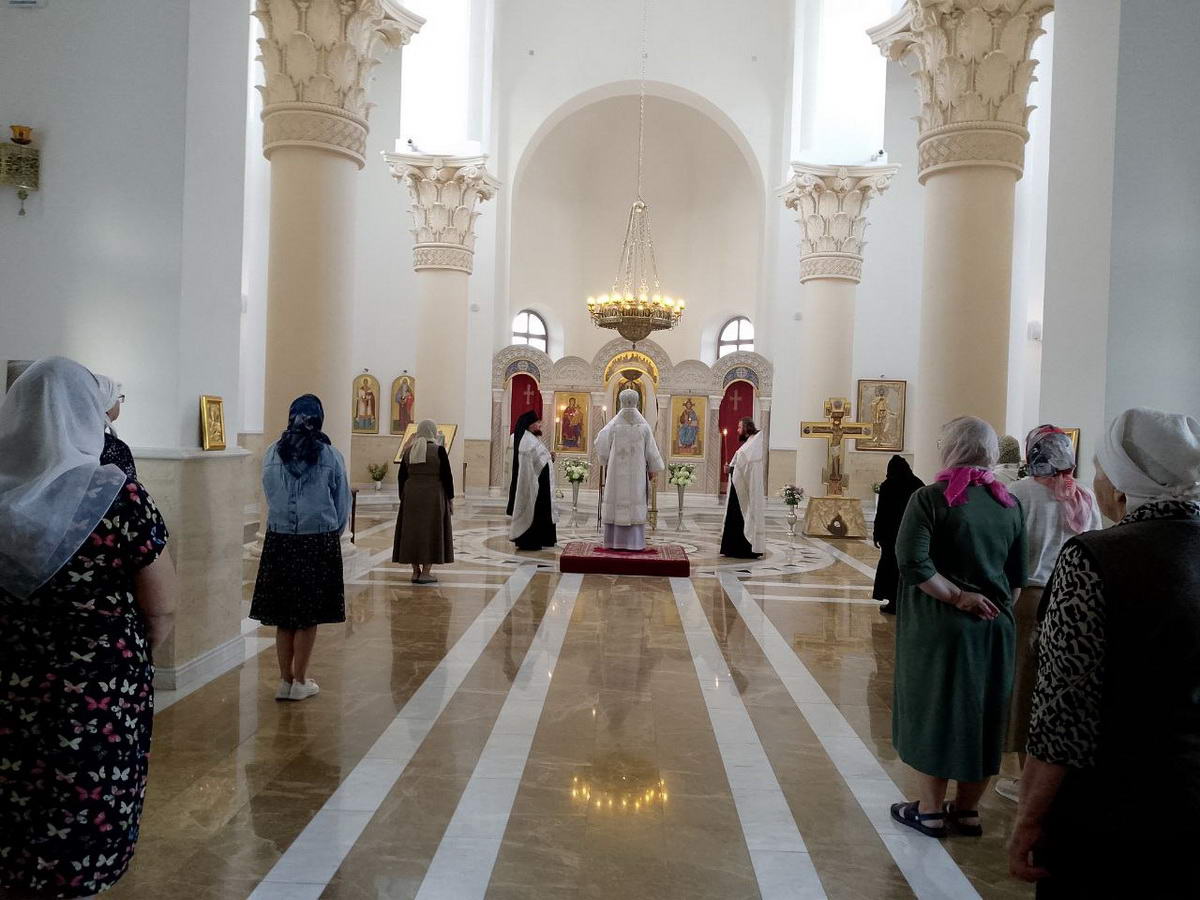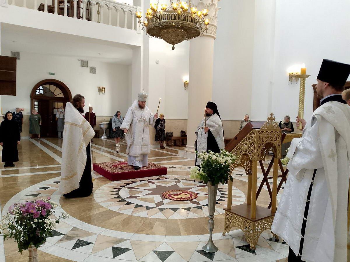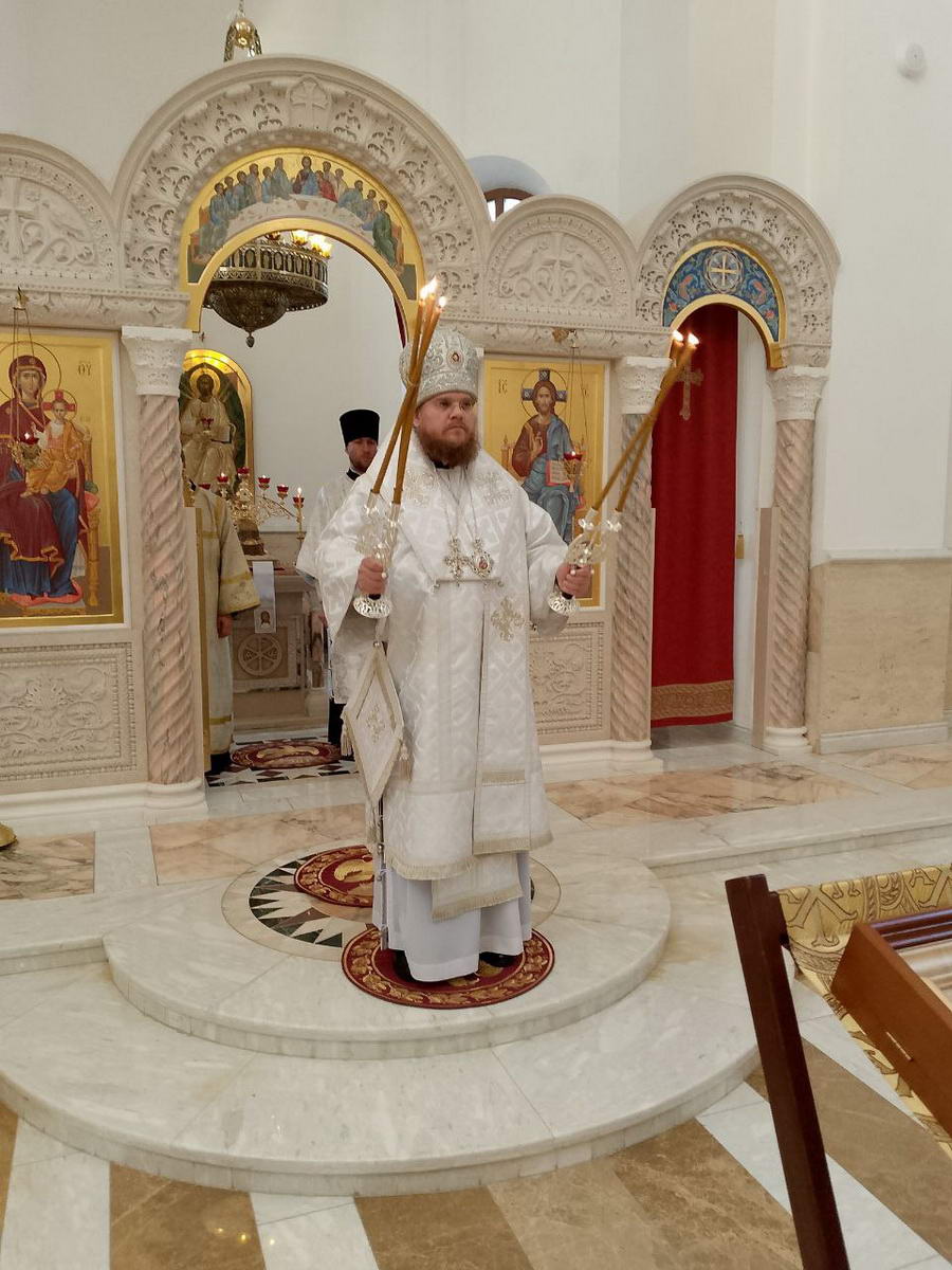 За всенощным бдением состоялось помазание прихожан освященным на литии елеем. В завершение богослужения настоятель храма отец Владислав поблагодарил прихожан за молитву и пригласил на предстоящую завтра Божественную литургию архиерейским чином.