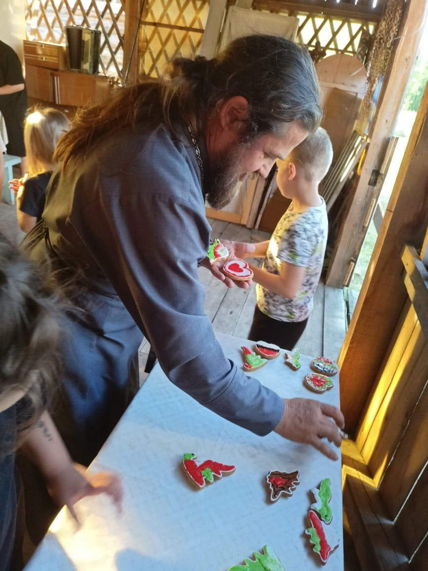В нынешней летней смене было много встреч. Приезжали не только родители и участники прошлых лет, но и случались новые знакомства. Например, с дружественным визитом семинар посетил настоятель прихода в честь Святых Первоверховных Апостолов Петра и Павла с.Мостовского Артемовского района иерей Иоанн Жевлаков с матушкой и детьми.