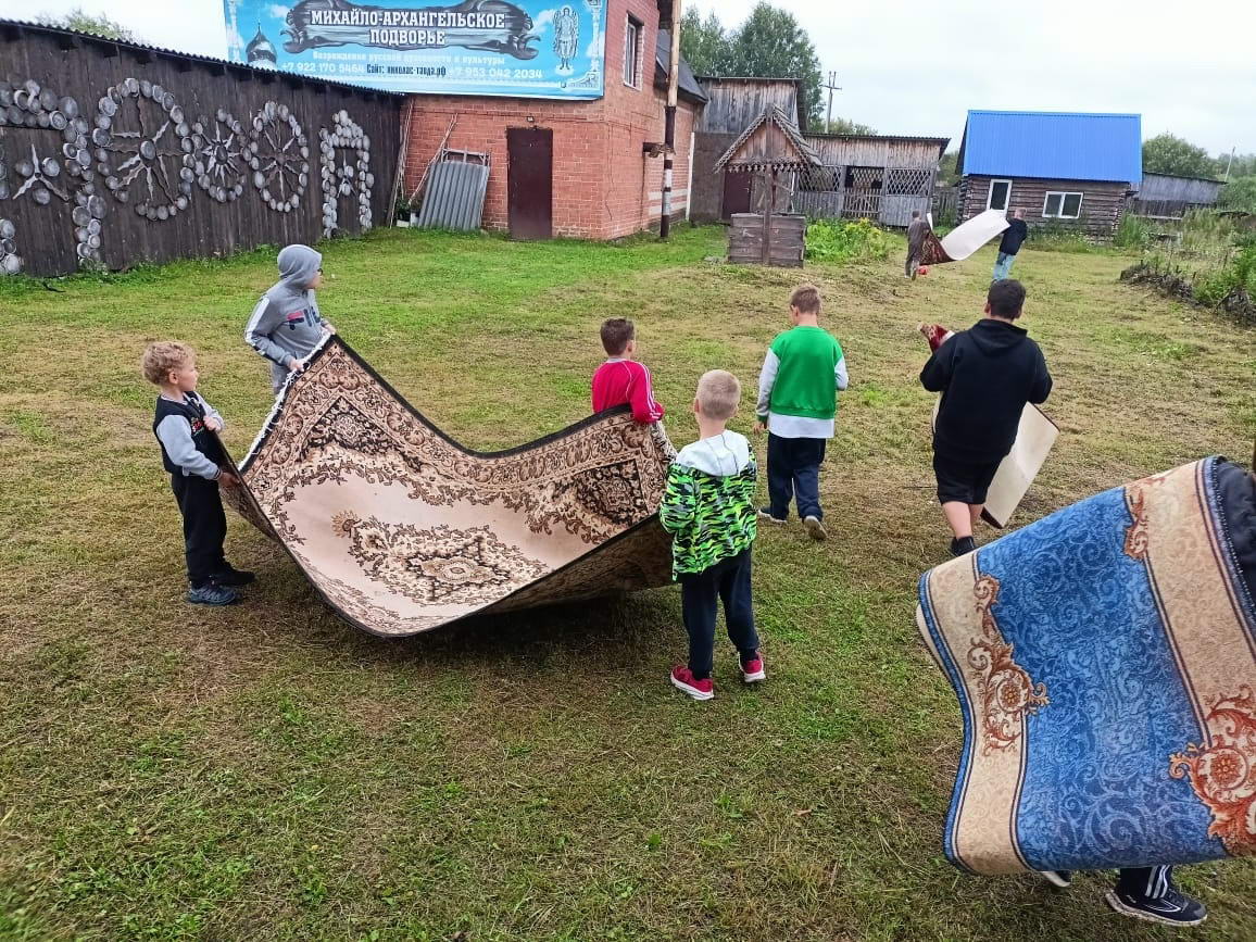 На семинаре были не только развлечения, но и работа. Все от мала до велика трудились на Михайло-Архангельском подворье: было организовано ежедневное дежурство по трапезной, силами детей и взрослых навели порядок в корпусе, храме и на прилегающей территории.