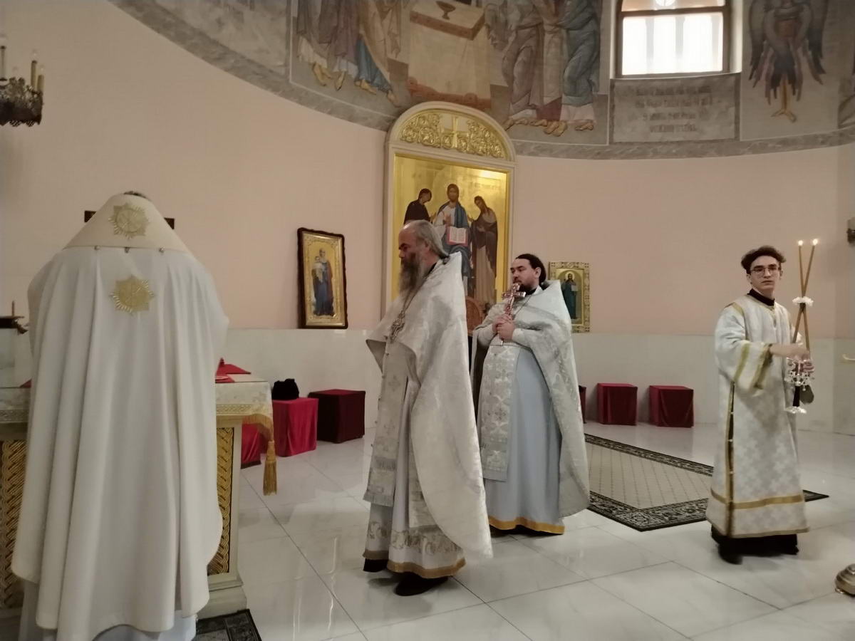 За богослужением были вознесены особые прошения и молитва о мире на Святой Руси.