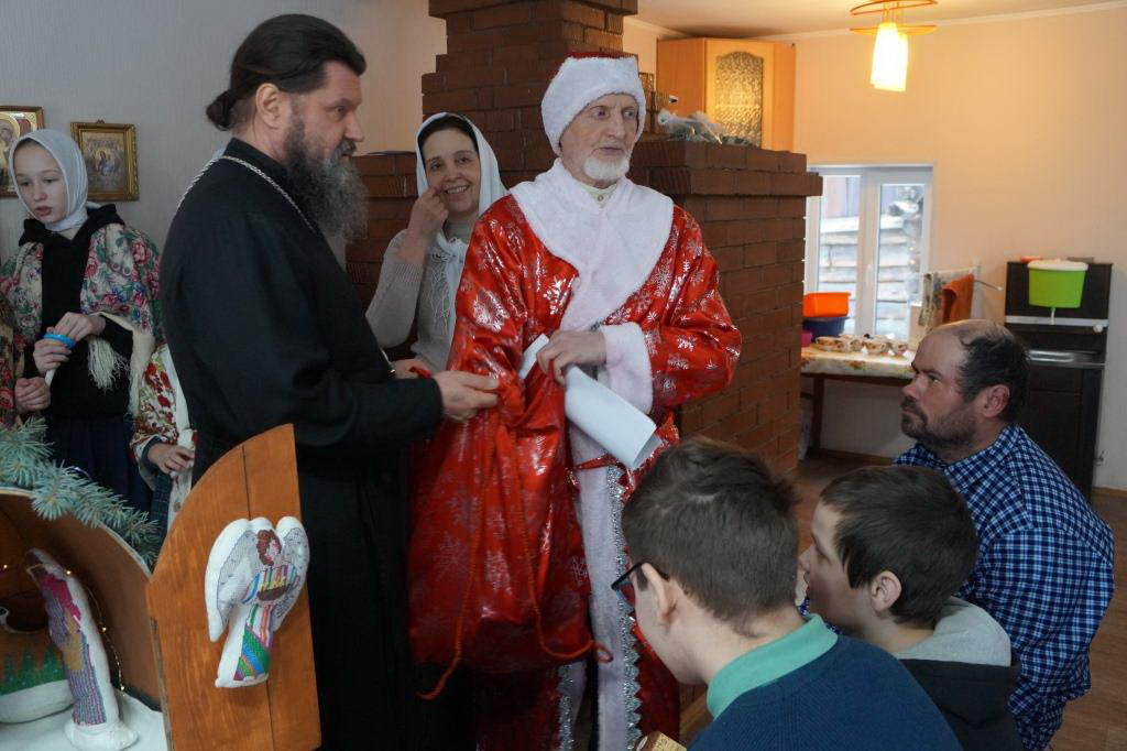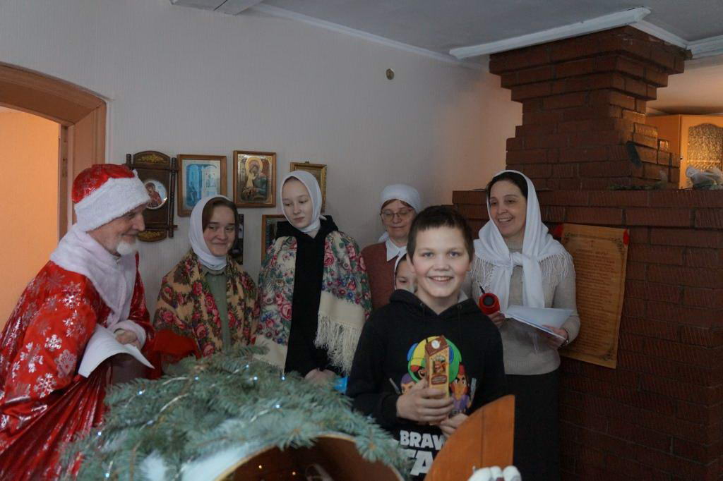 Местные жители уже ожидали и тепло встречали гостей в новом построенном храме святителя Модеста Иерусалимского. Здесь батюшка совершил праздничный Рождественский молебен. Гости и сельчане дружно молились о благополучии, мире в России и о здравии своих близких. С новым иконостасом, который был установлен в конце декабря 2024 года, храм преобразился на глазах, он стал более красивым, тёплым и уютным. После молебна праздник продолжился в гостеприимном доме ктитора Василия Владимировича Малыгина. Сейчас там располагается трапезная. У Рождественского вертепа дети и взрослые радостно пели колядки под весёлый звон колокольчиков, отгадывали загадки, рассказывали стихи и, конечно же, получили сладкие подарки и мягкие игрушки от Рождественского деда. Праздник завершился совместным чаепитием и купанием в святом Симеоновском источнике. Попрощались, но ненадолго, ведь уже в праздник Крещения Господня, 19 января, мы вновь встретимся в любимом селе Бичур на Великом освящении воды.