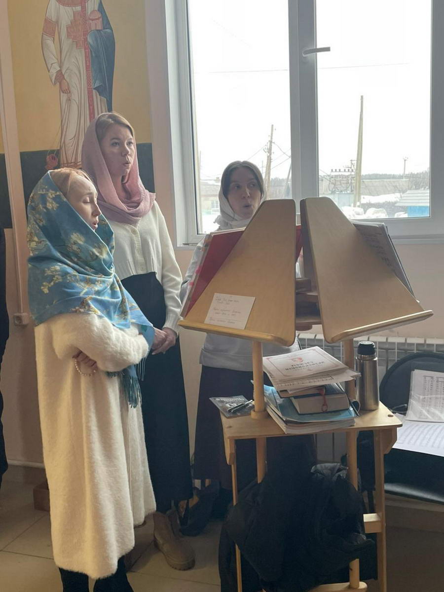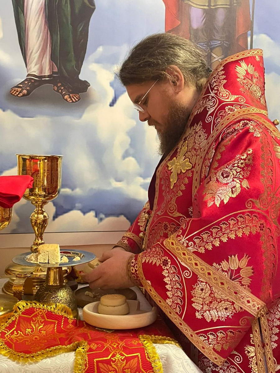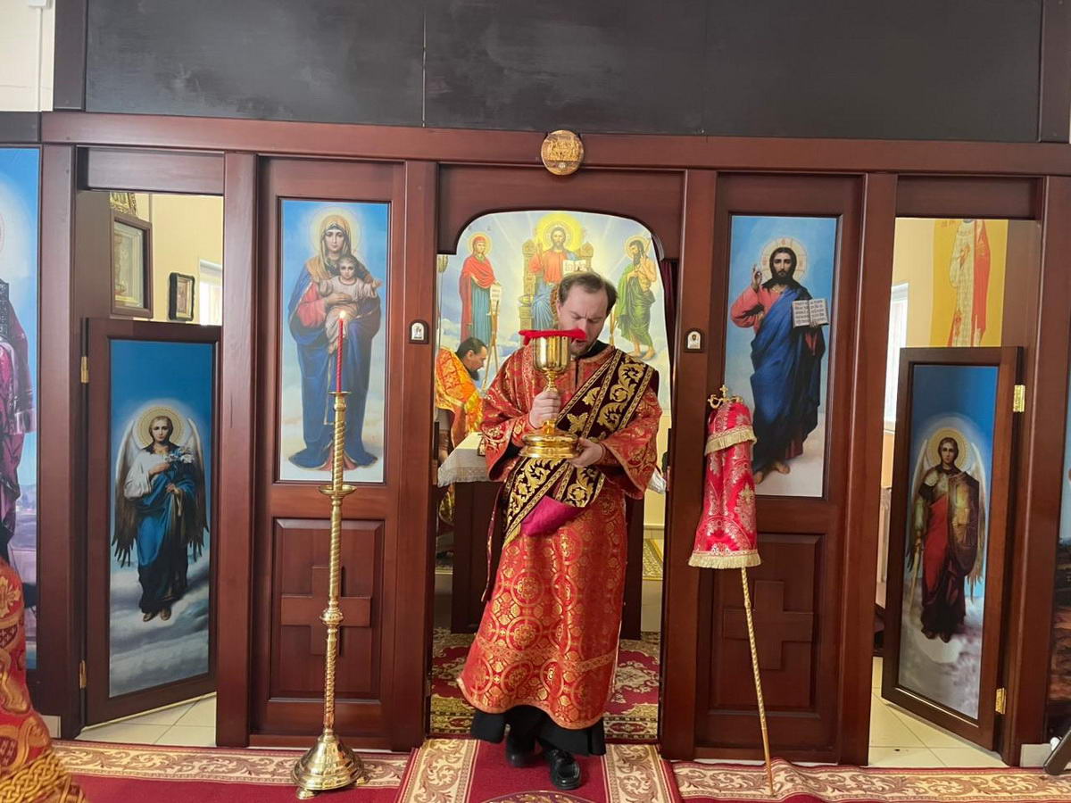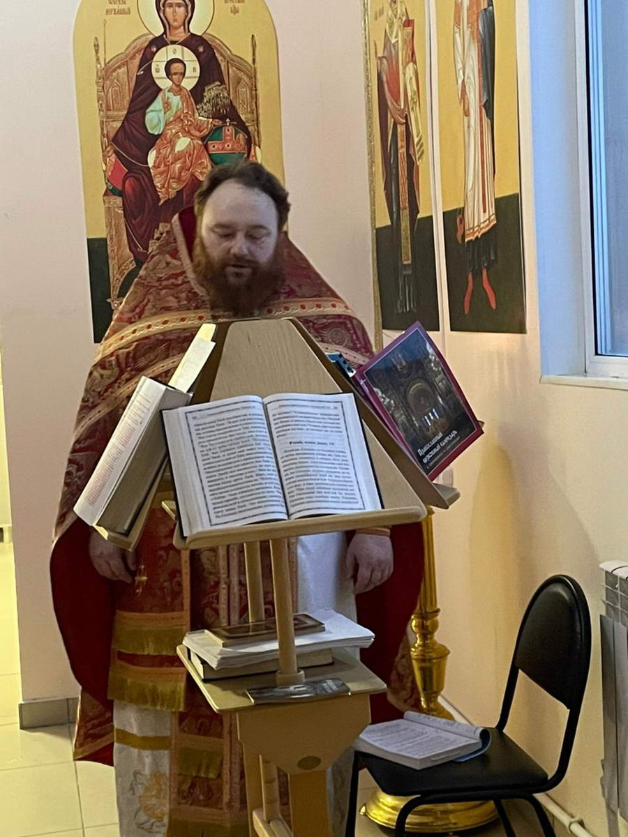 За литургией были вознесены особые прошения и молитвы о мире на Святой Руси. По запричастном стихе с проповедью к прихожанам обратился клирик мужского монастыря Новомучеников и исповедников Церкви Русской иеромонах Прокопий (Руднев).
