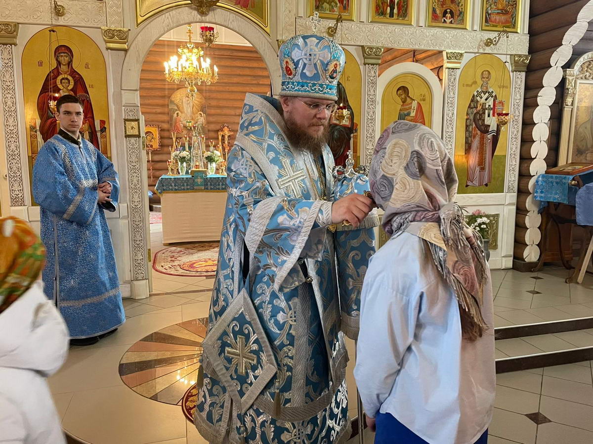 Множество людей в этот воскресный день пришли на архиерейское богослужение, большая часть из которых подошли к принятию Святых Христовых Тайн.